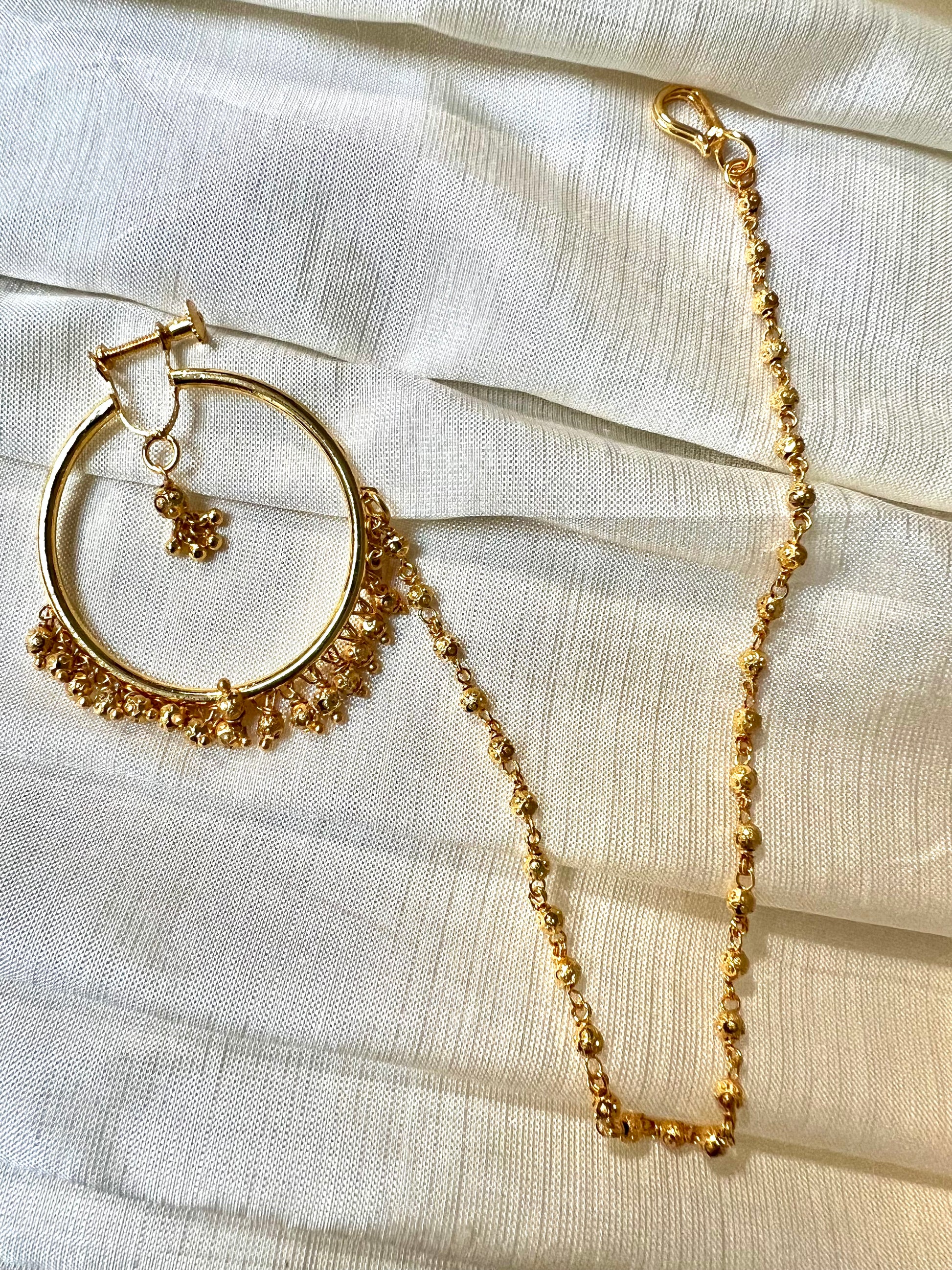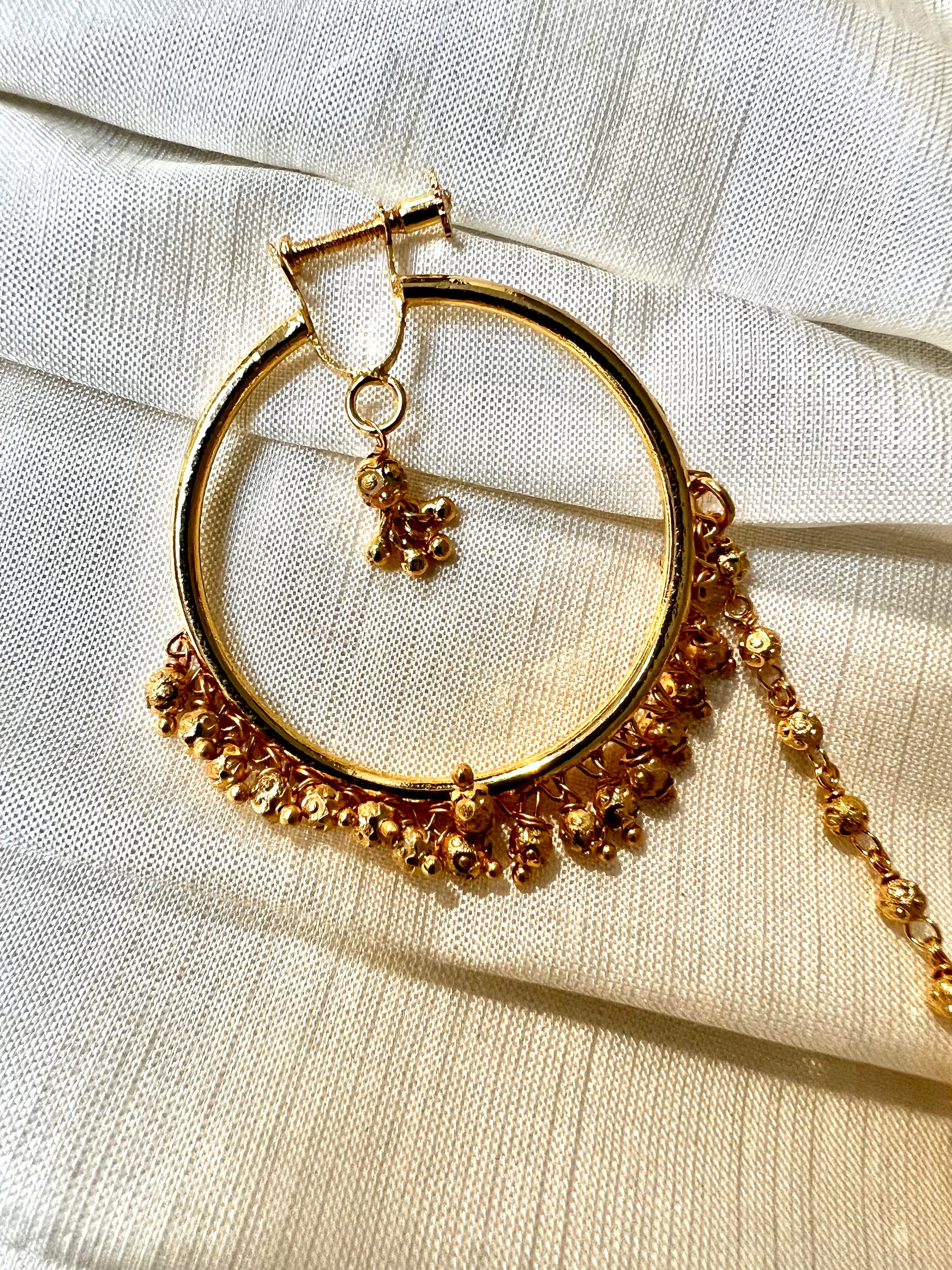 Beautiful gold plated large nosering with dangling golden beads