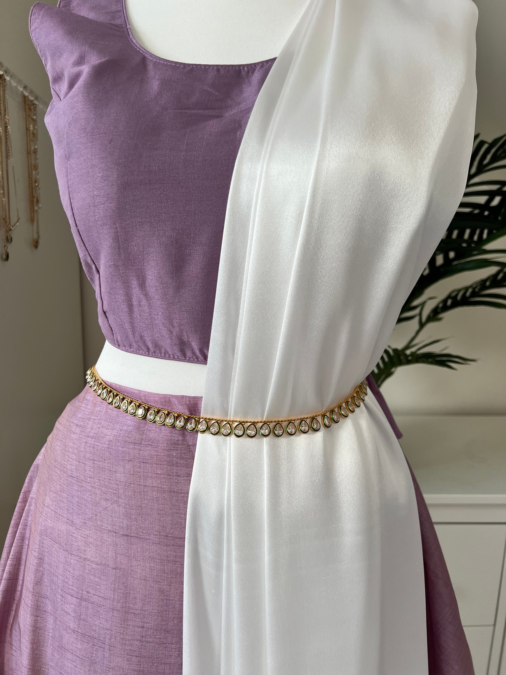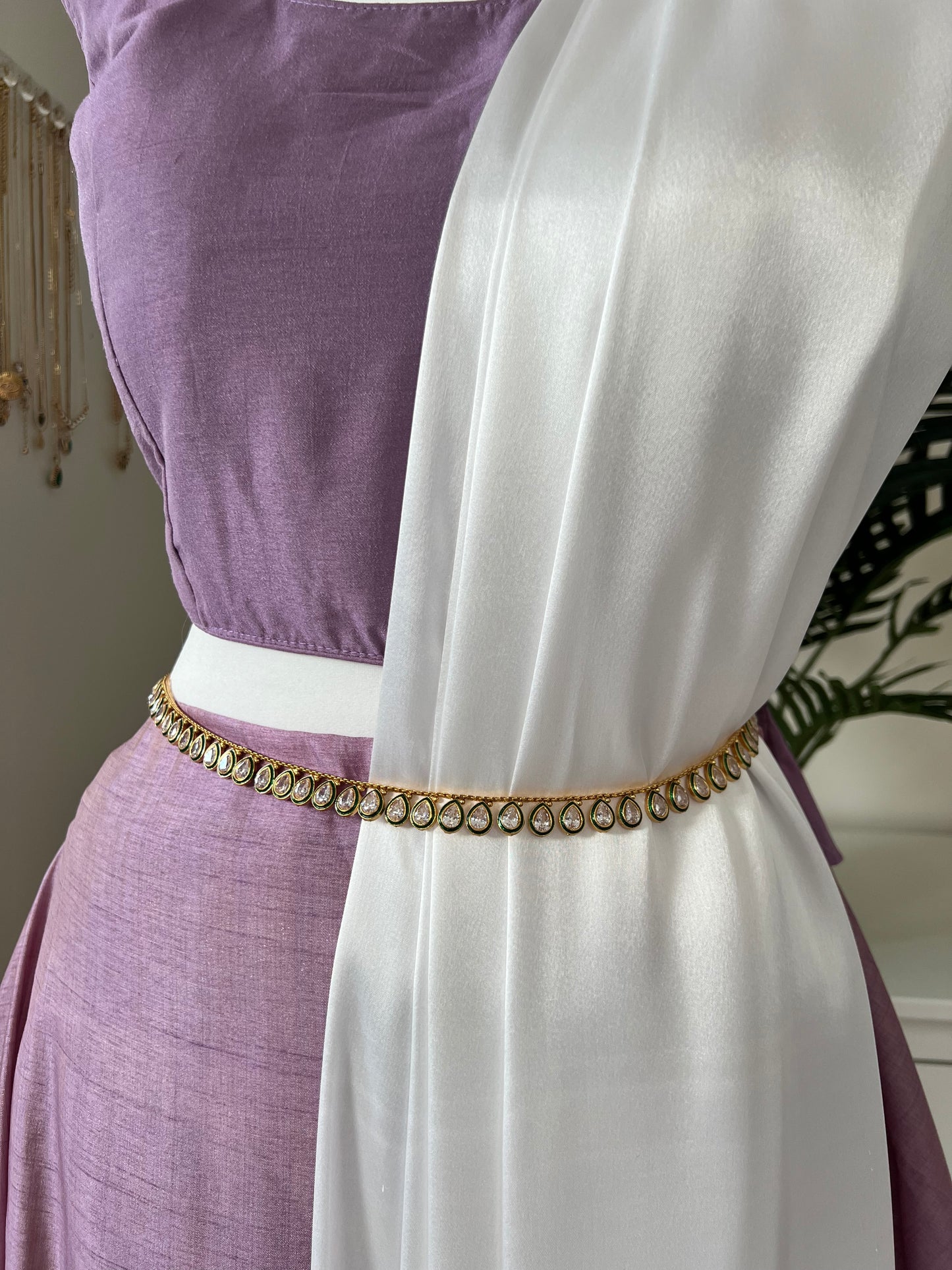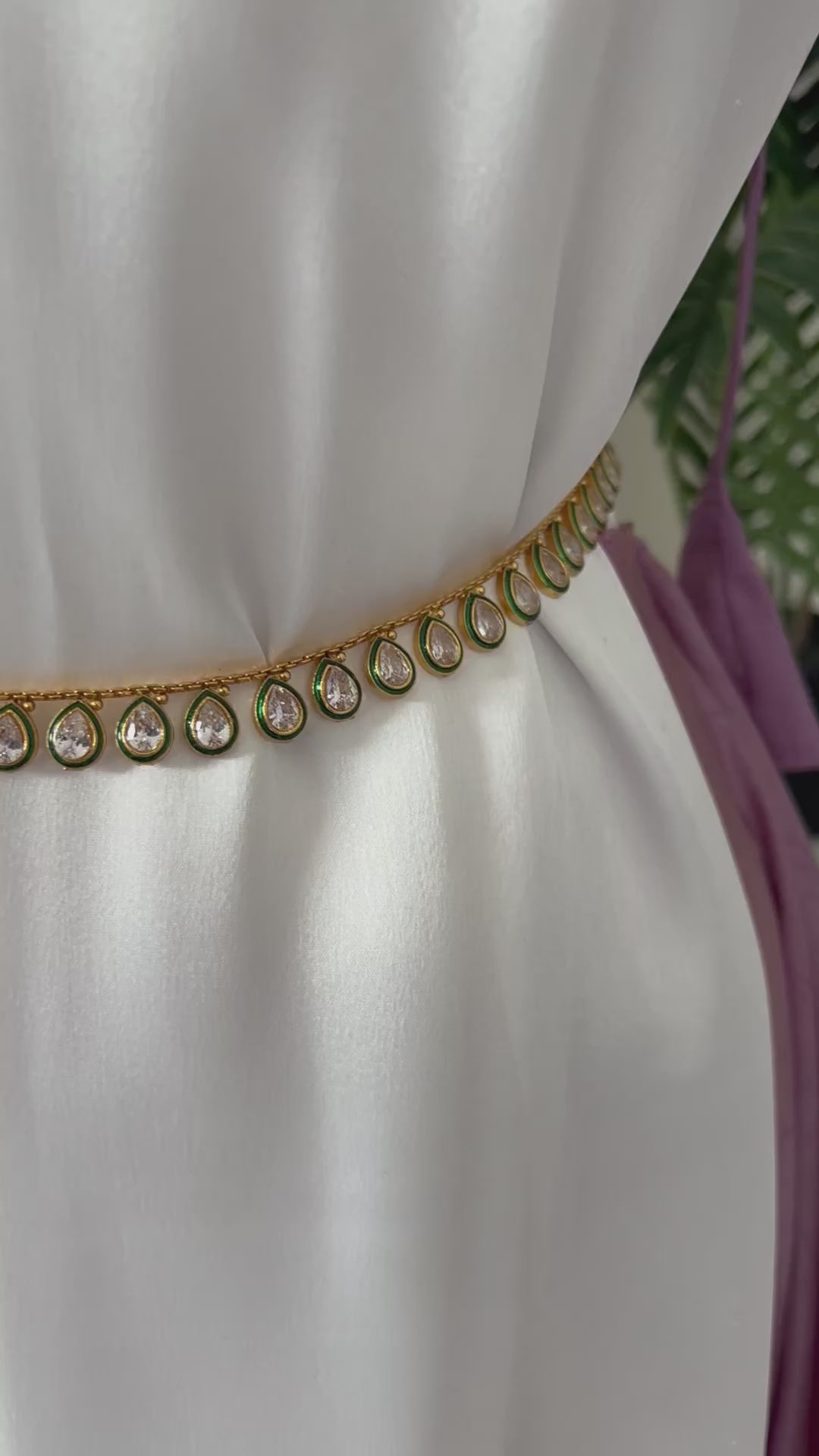 Antique green painted big tear drop shaped white stoned, gold painted waistchain W3003