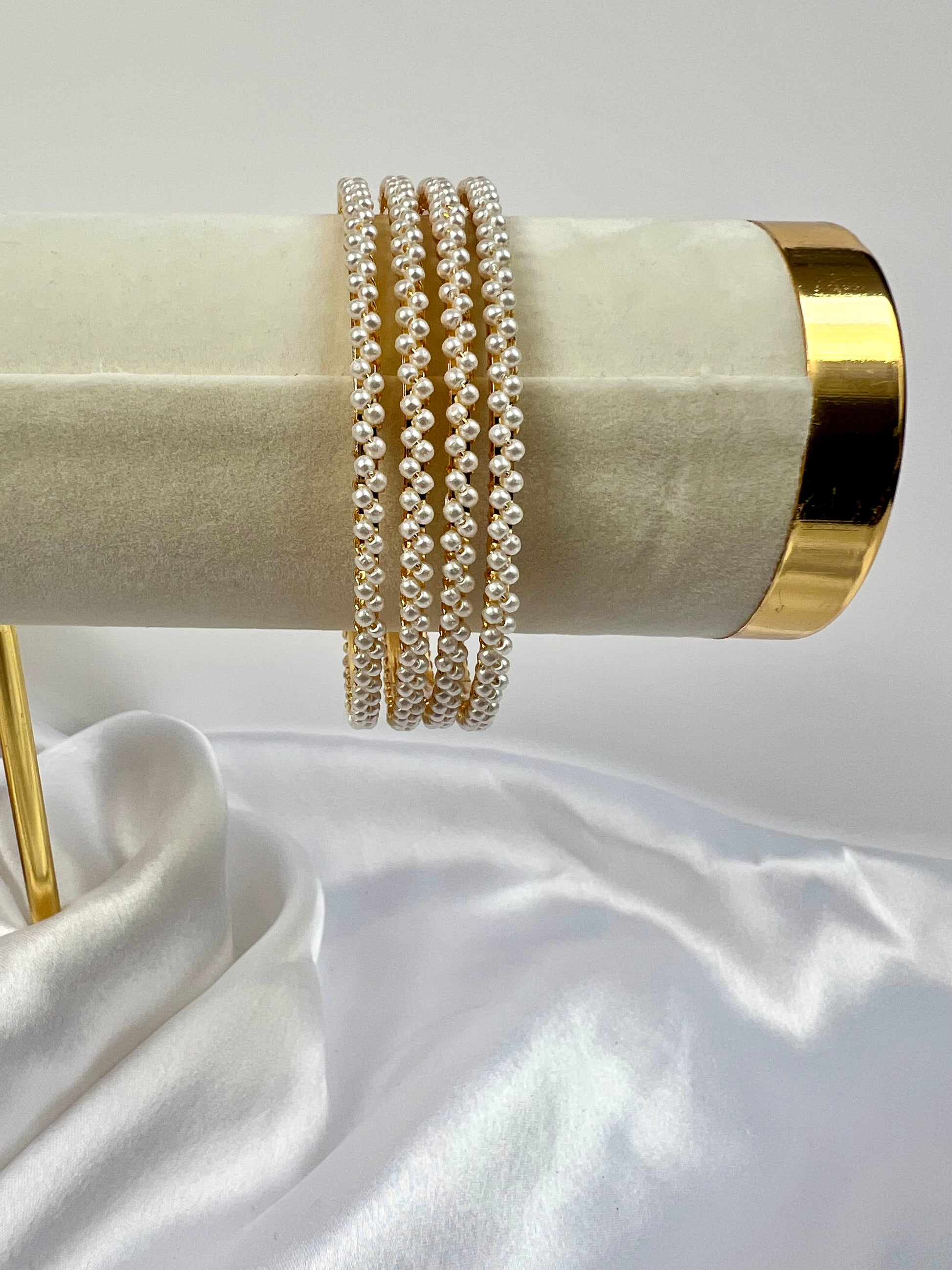 Gold Bangles With Gold Plating and Pearls, set of four B3008