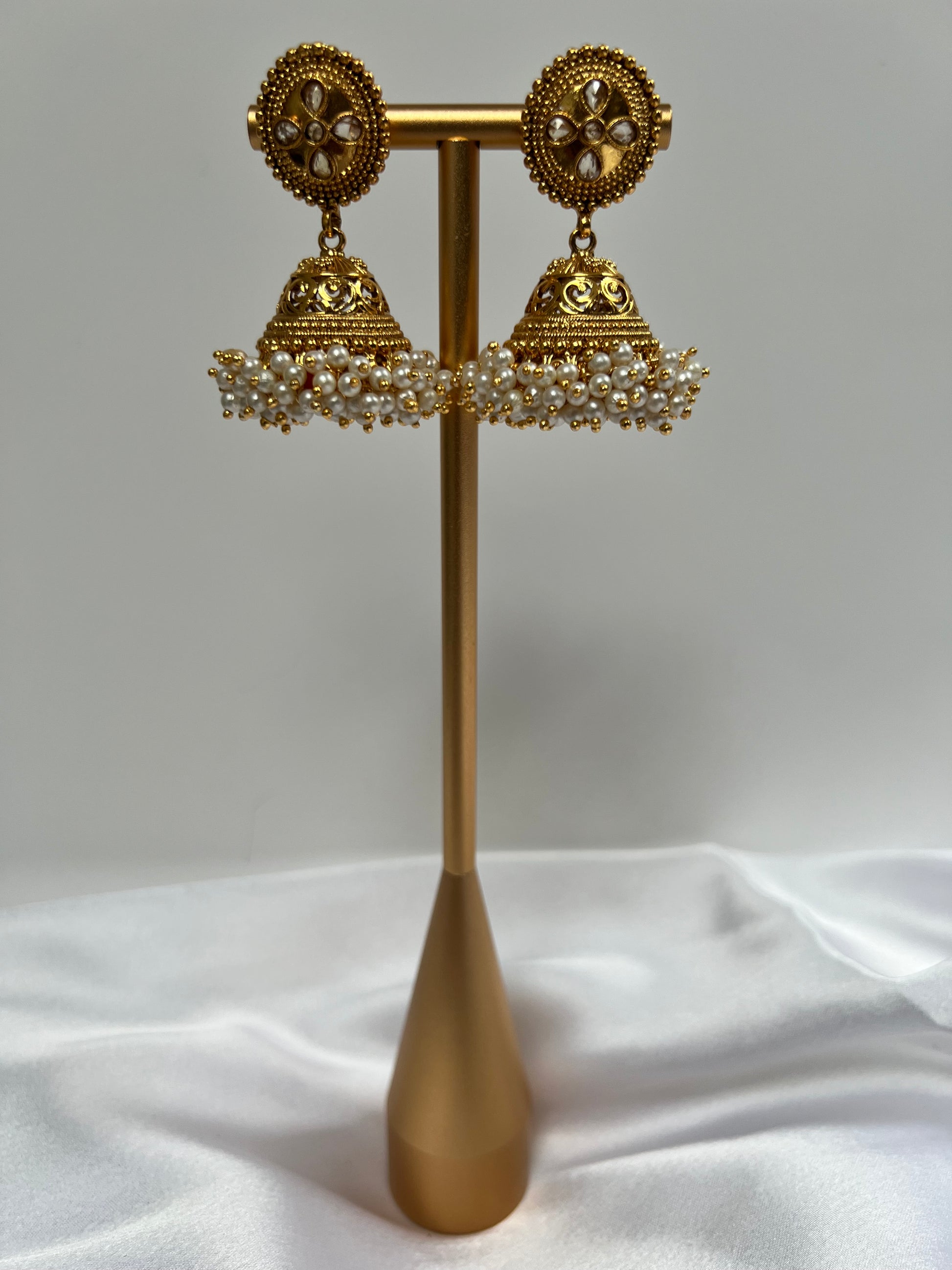 Beautiful gold plated earring with hanging ivory pearls