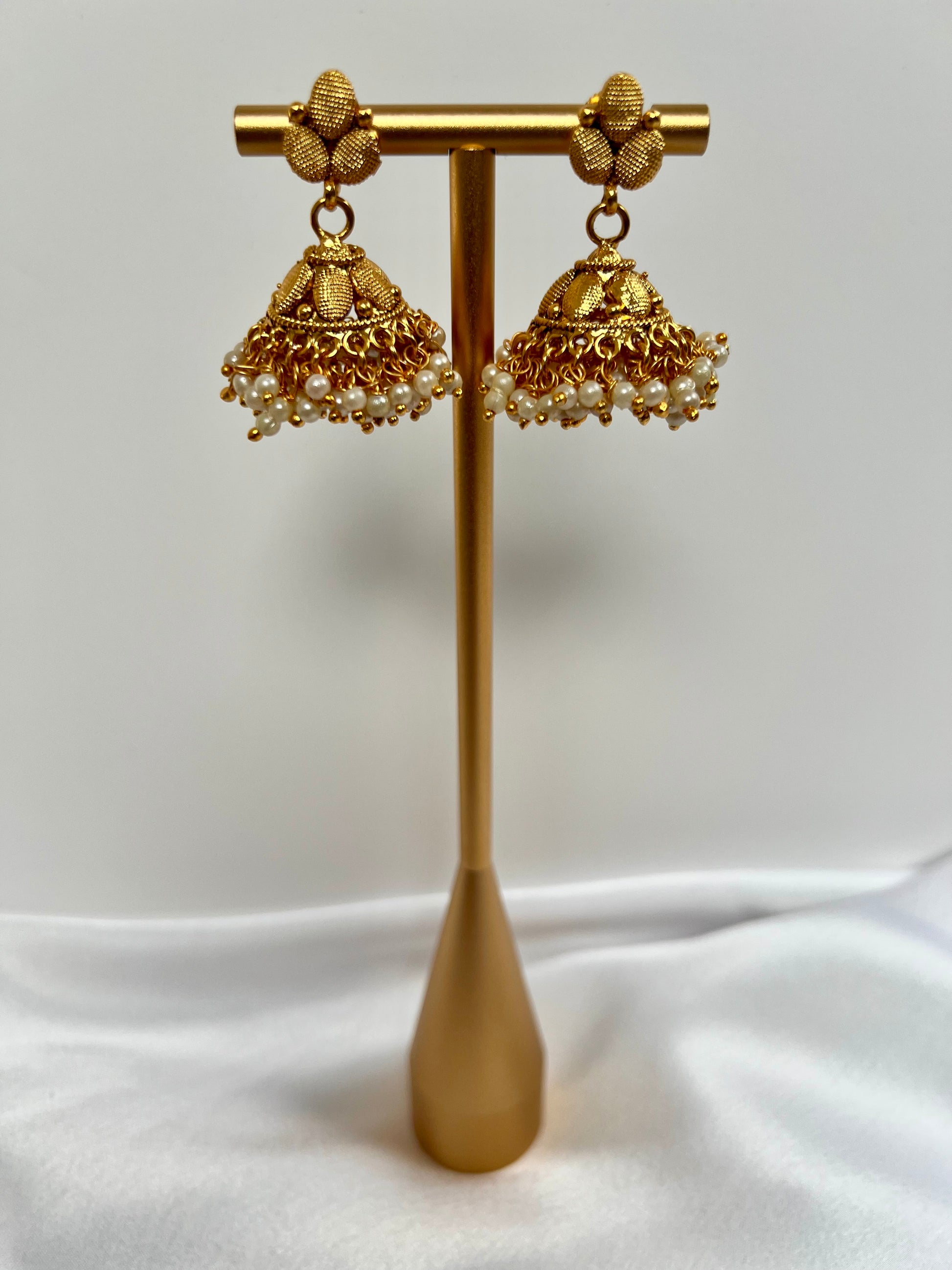Beautiful gold plated earring with hanging ivory pearls