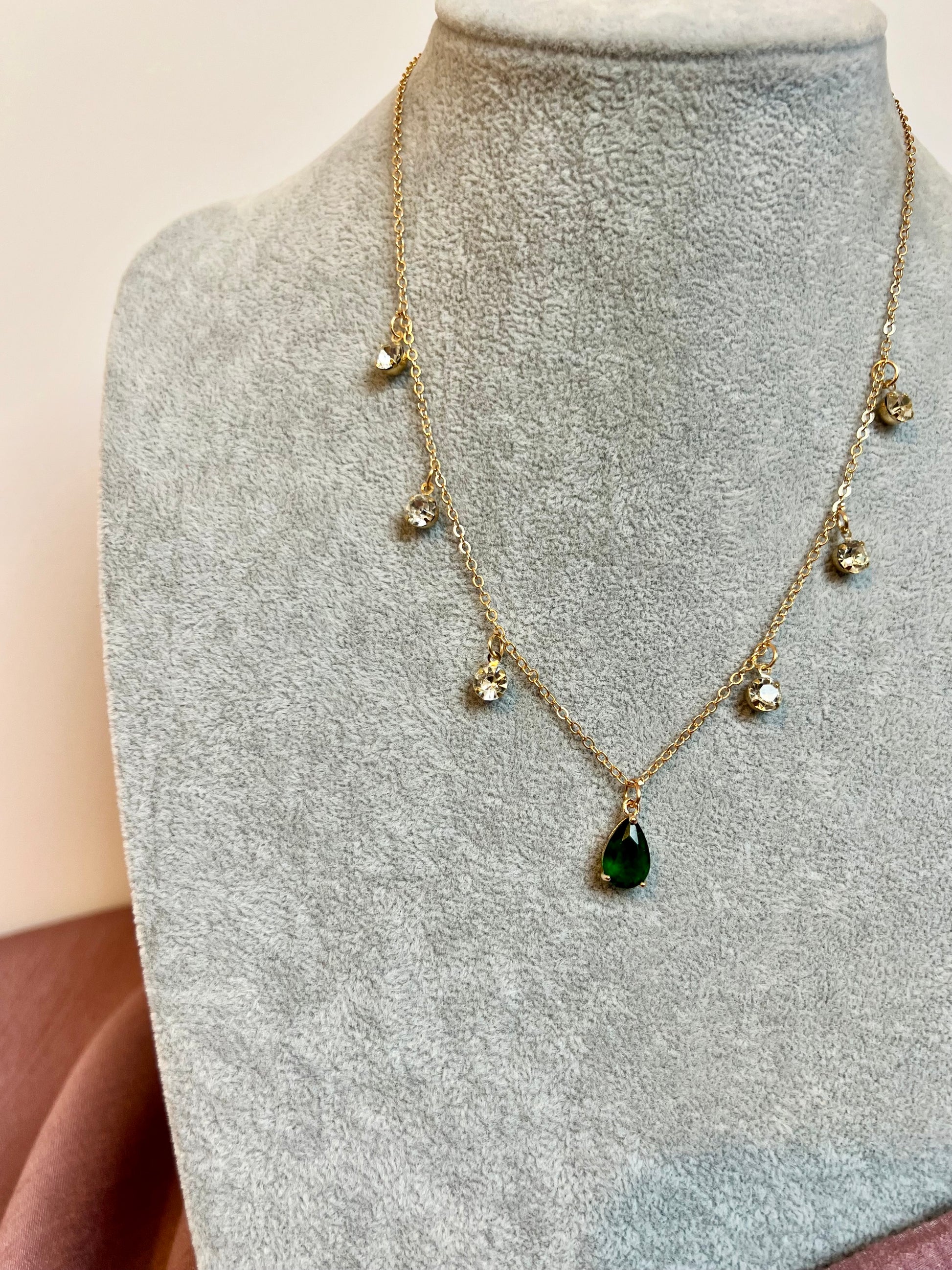 AVANI - simple gold chain with dangling stones in white and green N3225