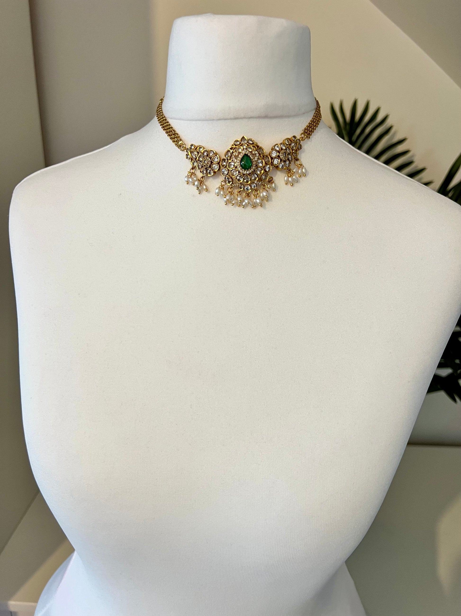 BAVITHRA - small kundan stone choker set with matching jhumkas N3175