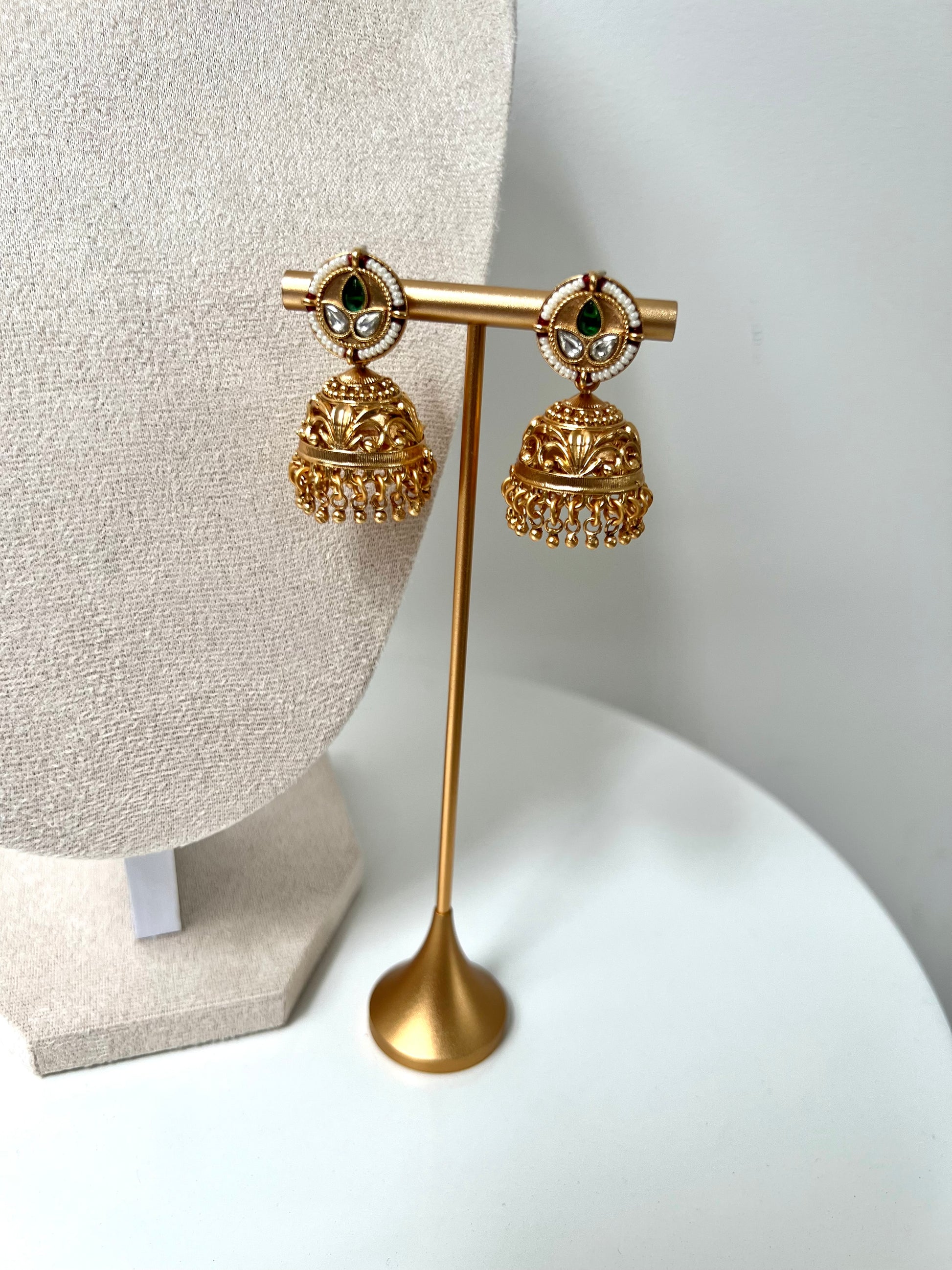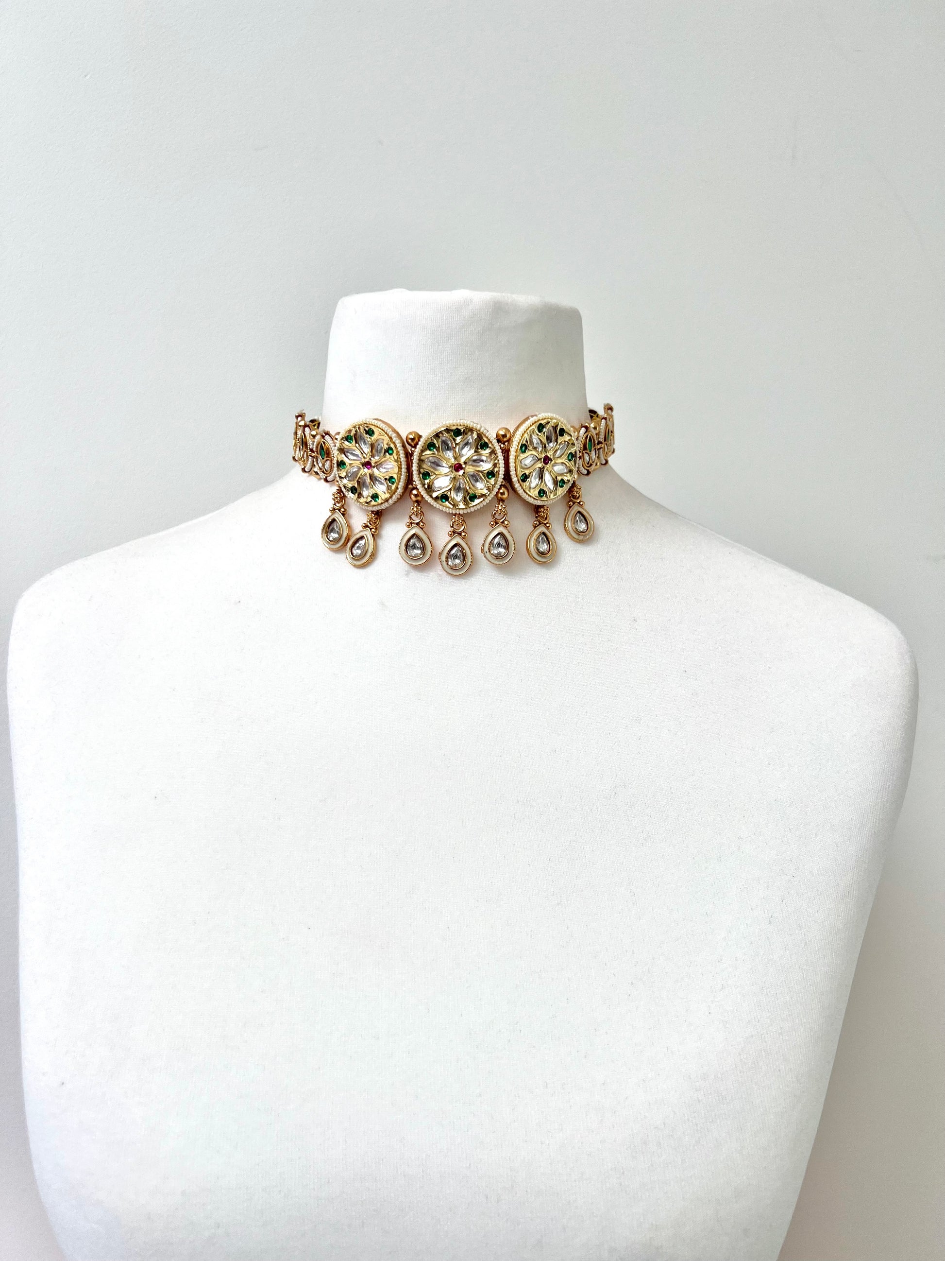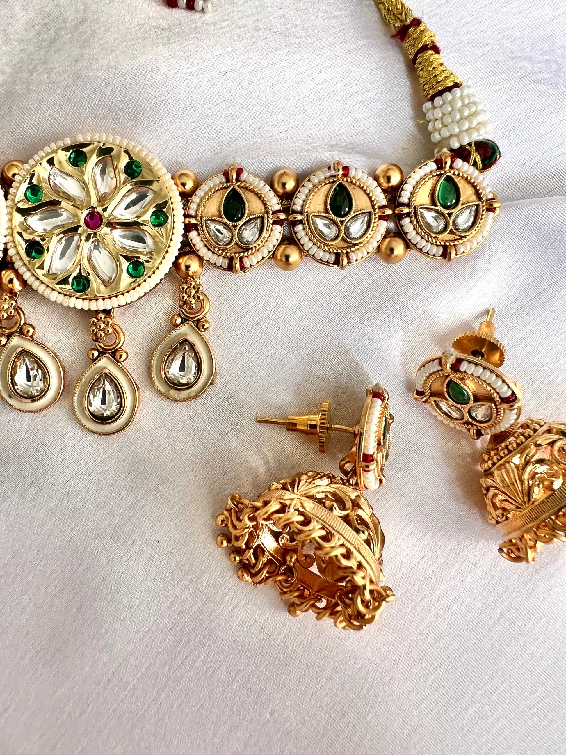 AMAKA - Beautiful antique kundan choker set in green with matching jhumkas N3257
