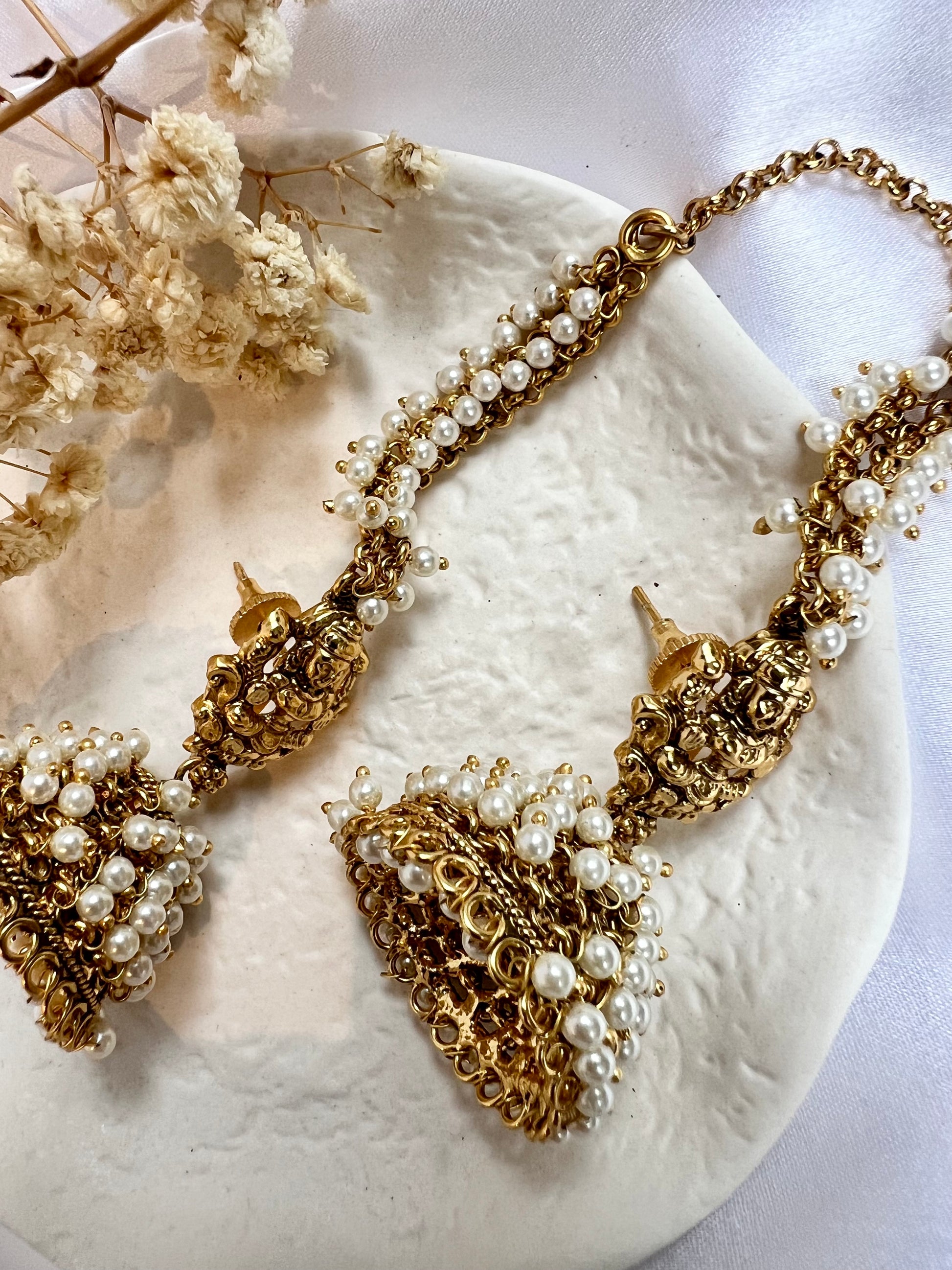 Bridal temple antique pearl jhumka earrings E3040