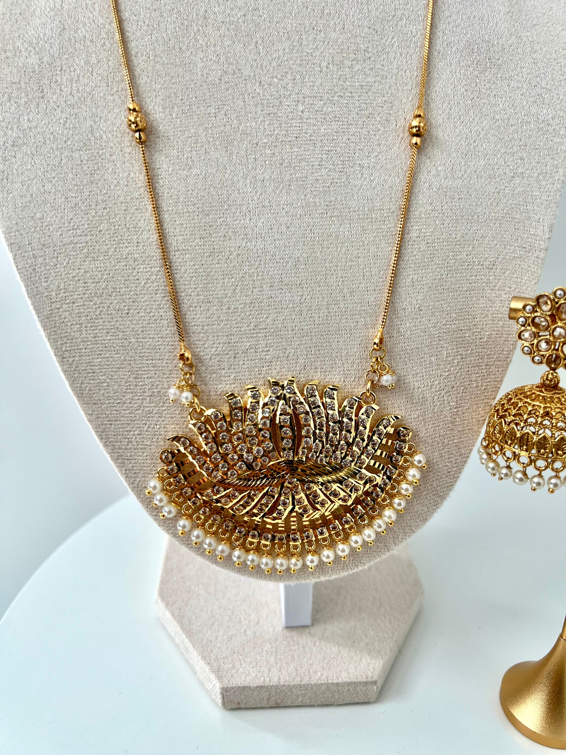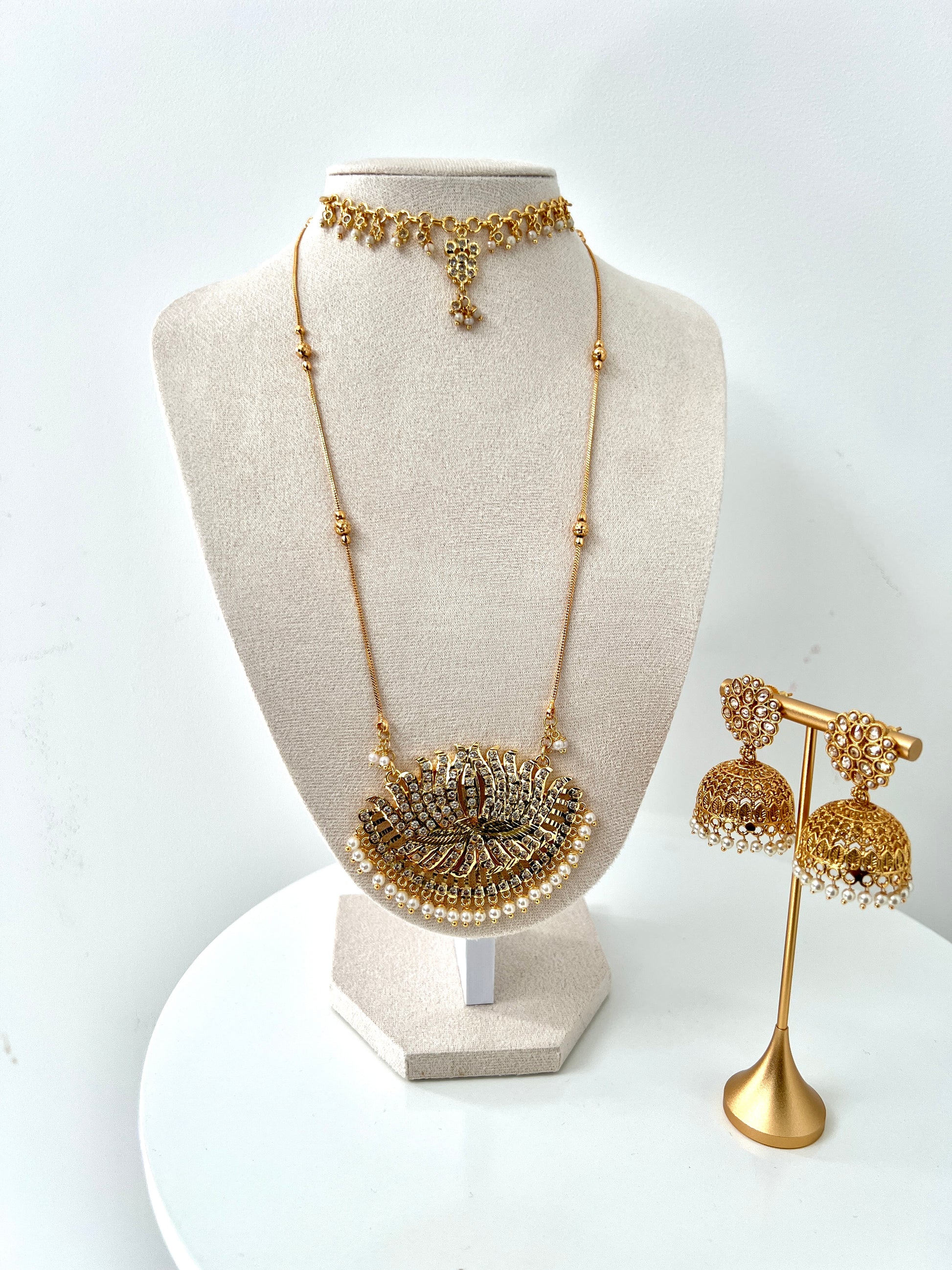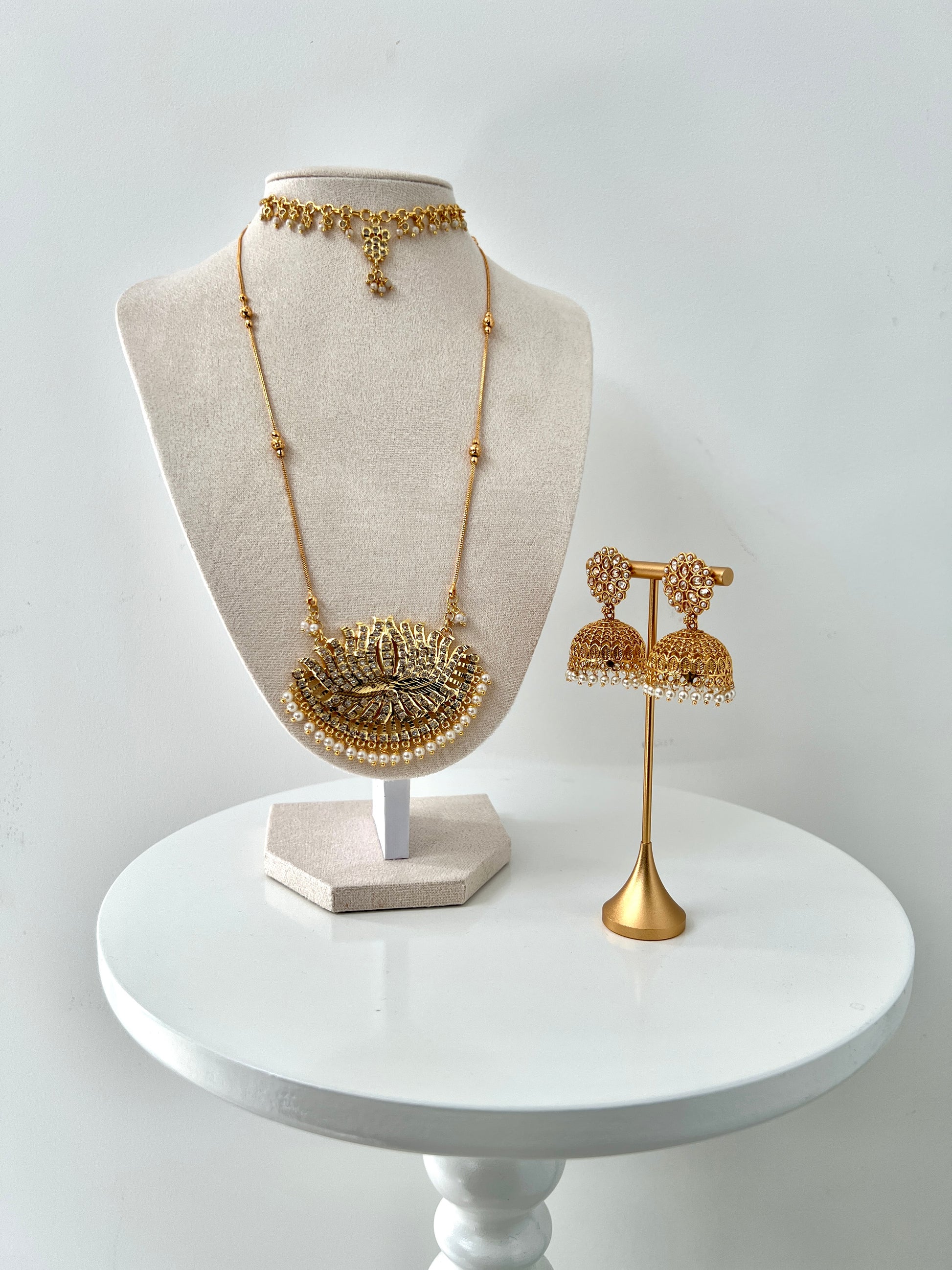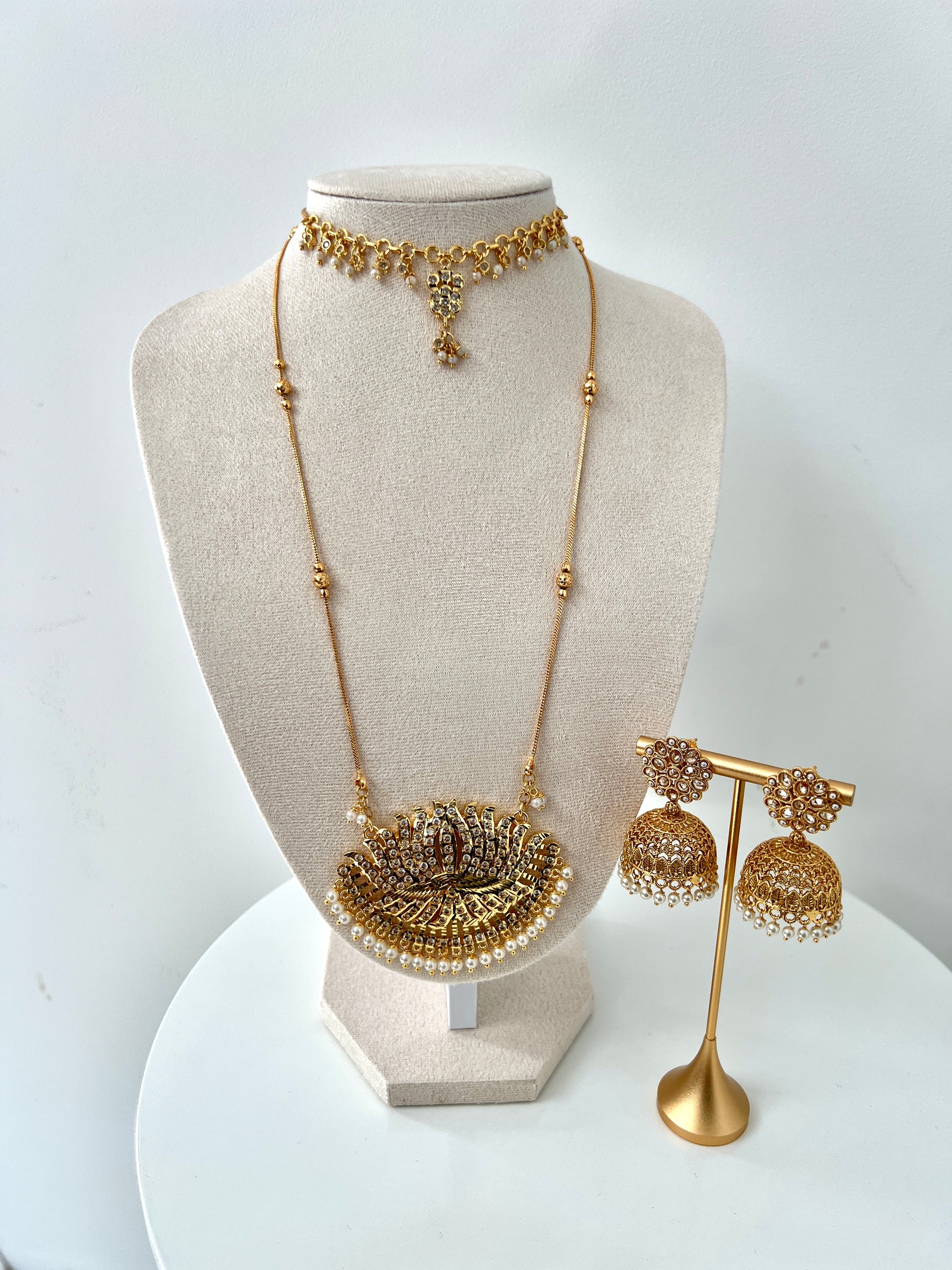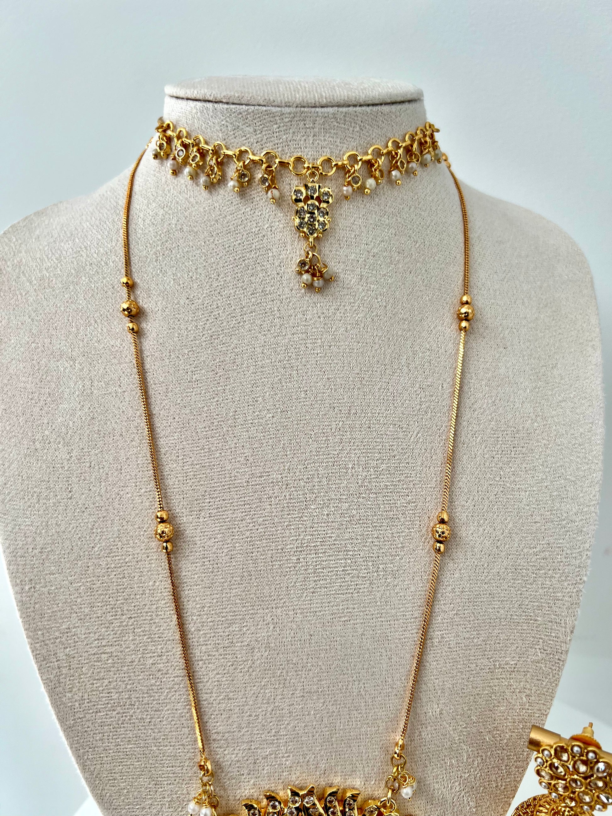 Classic impon pathakam necklace set with dainty choker and jhumkas NR300