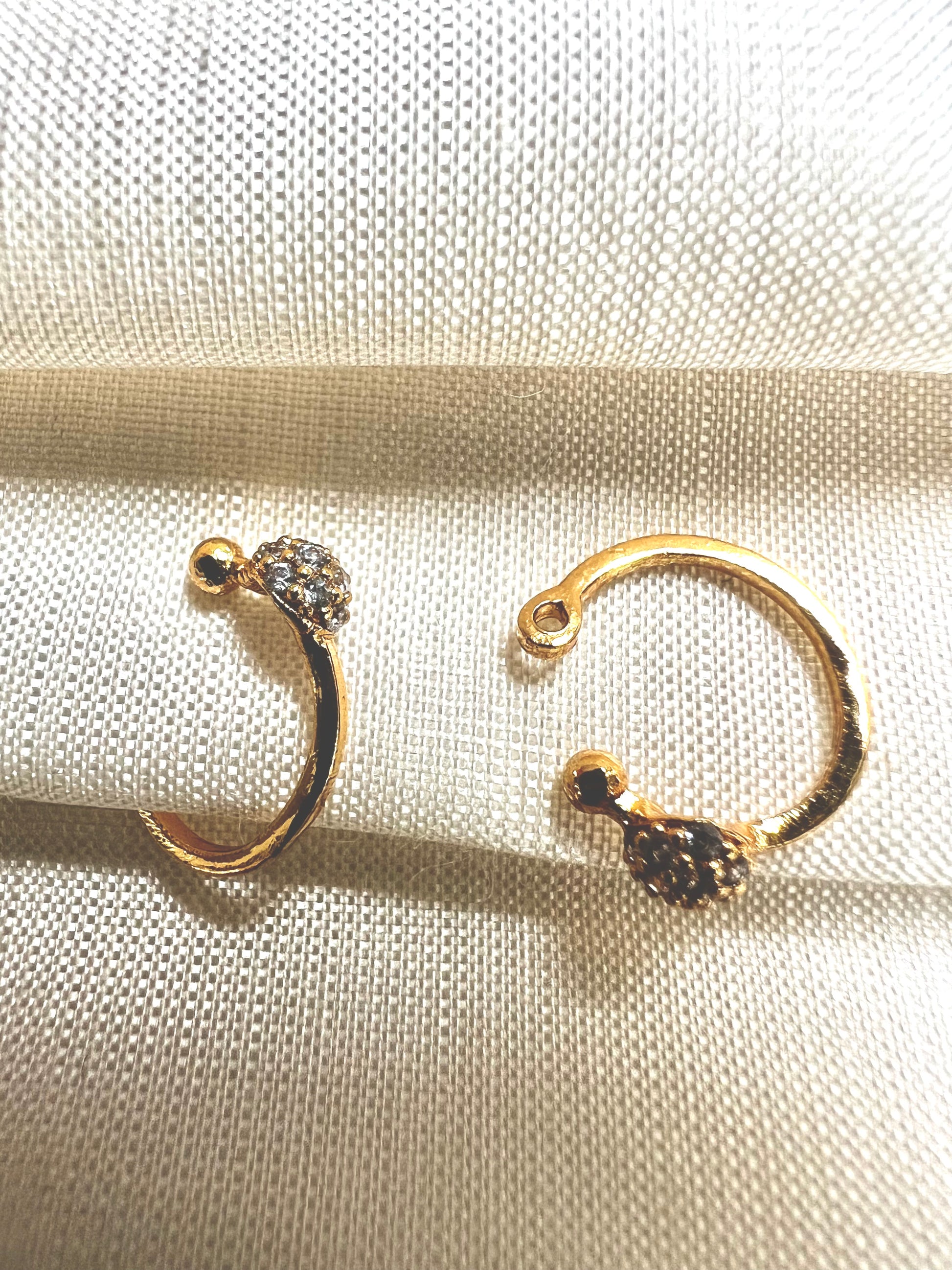 Simple gold plated press in nosering with cz stones