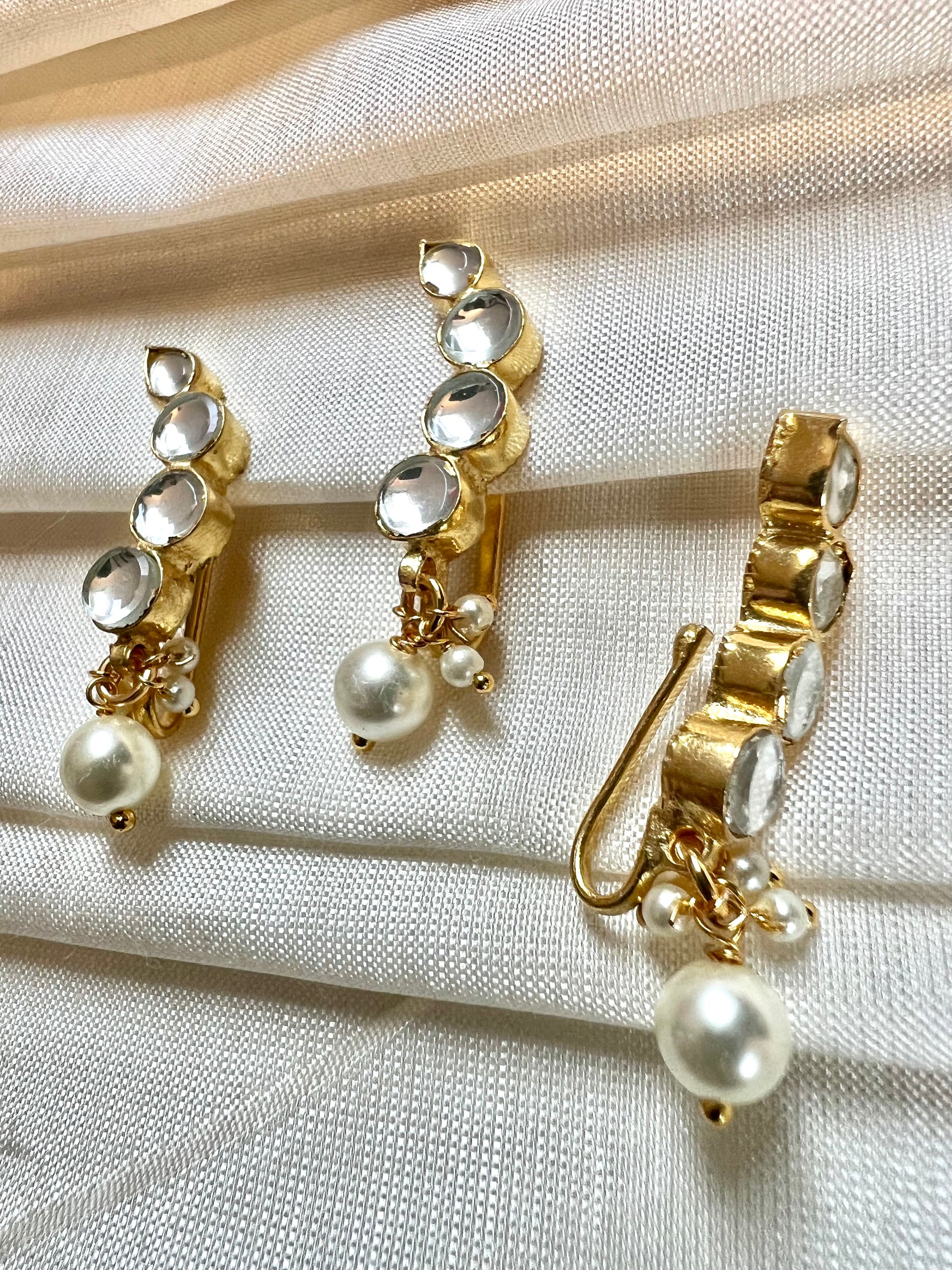 Kundan stone pressing nosering with pearls gold plated NR3036