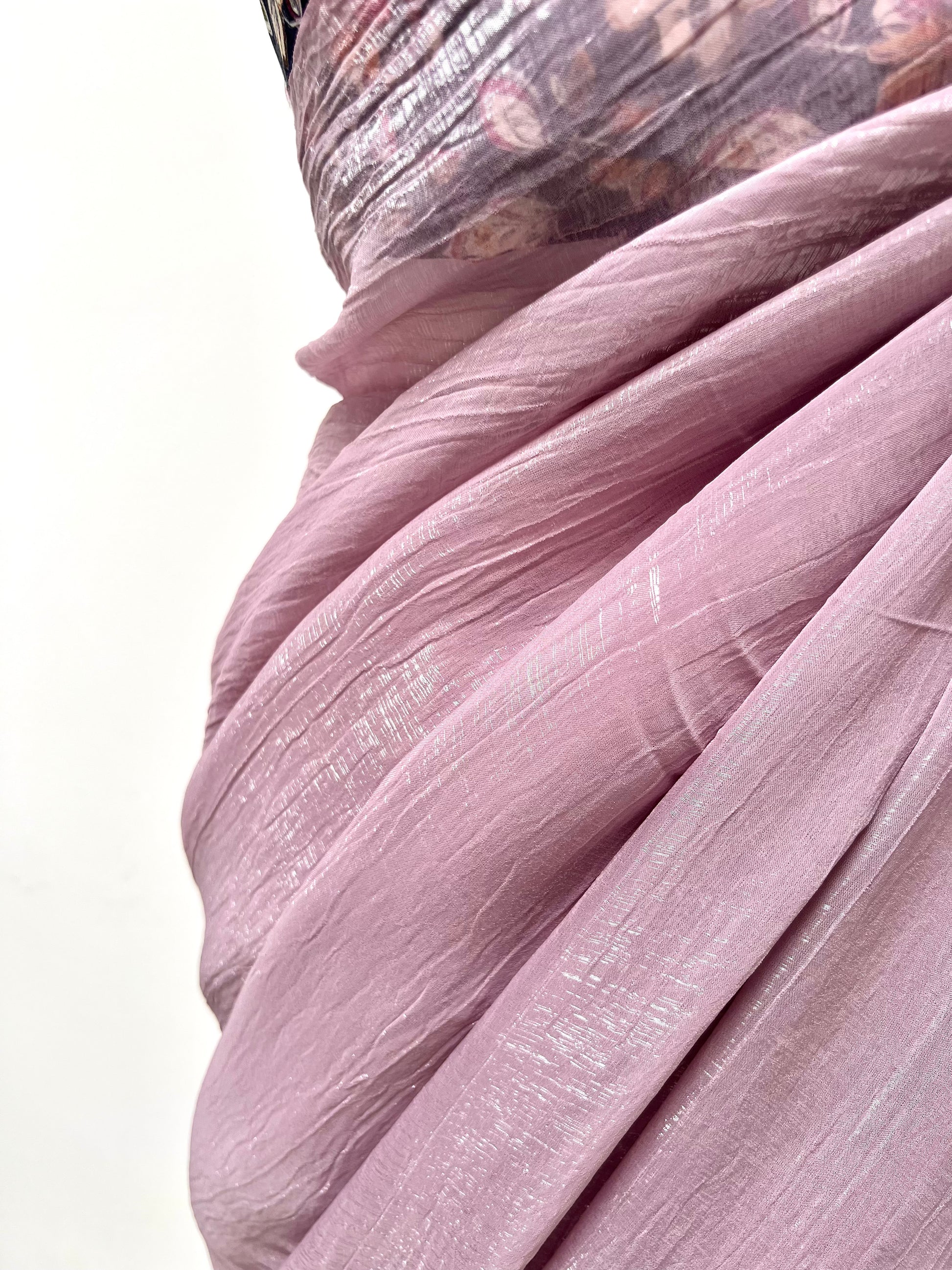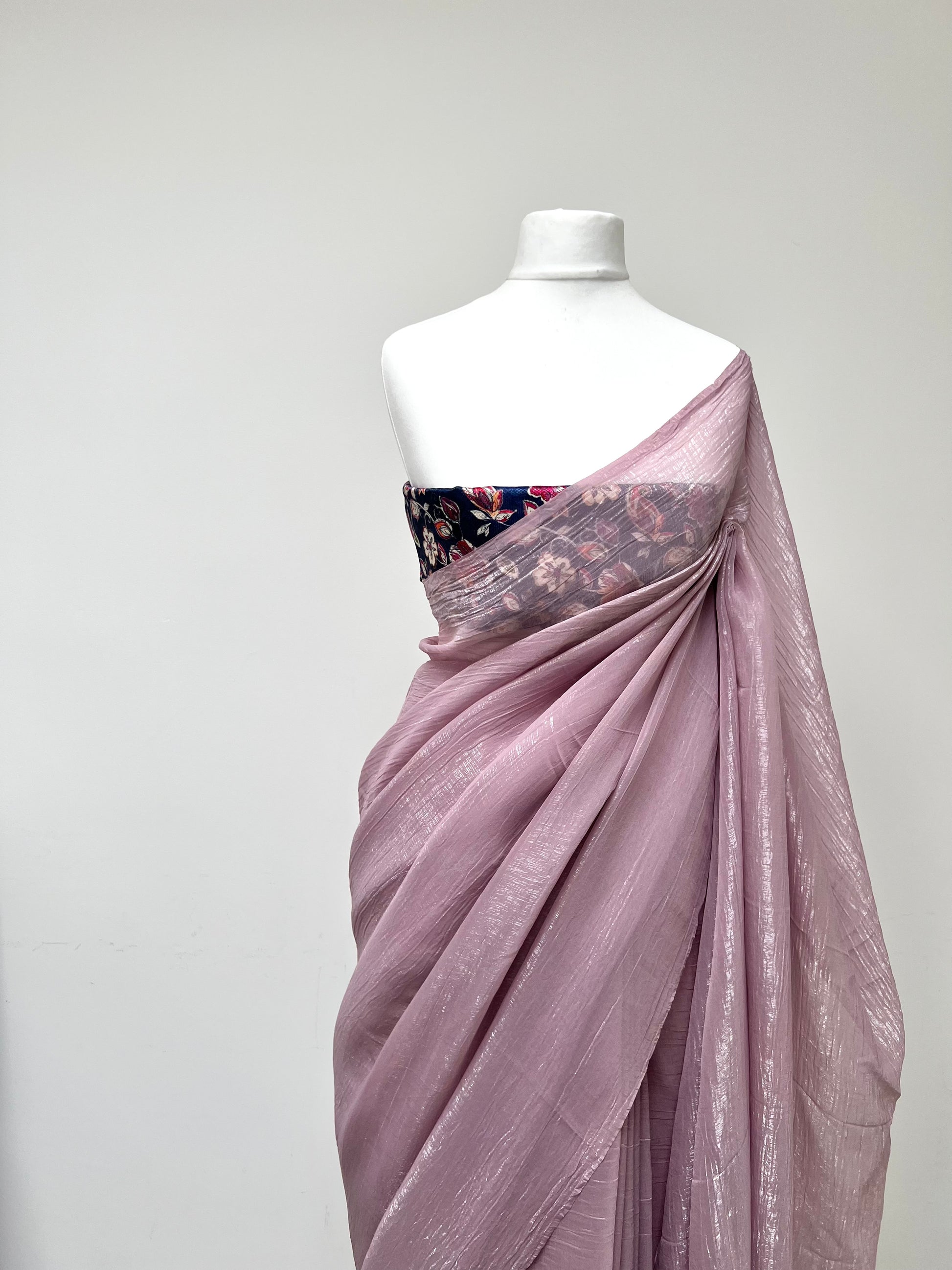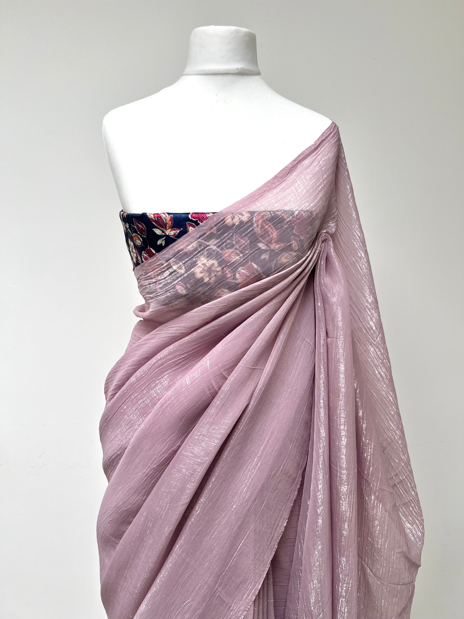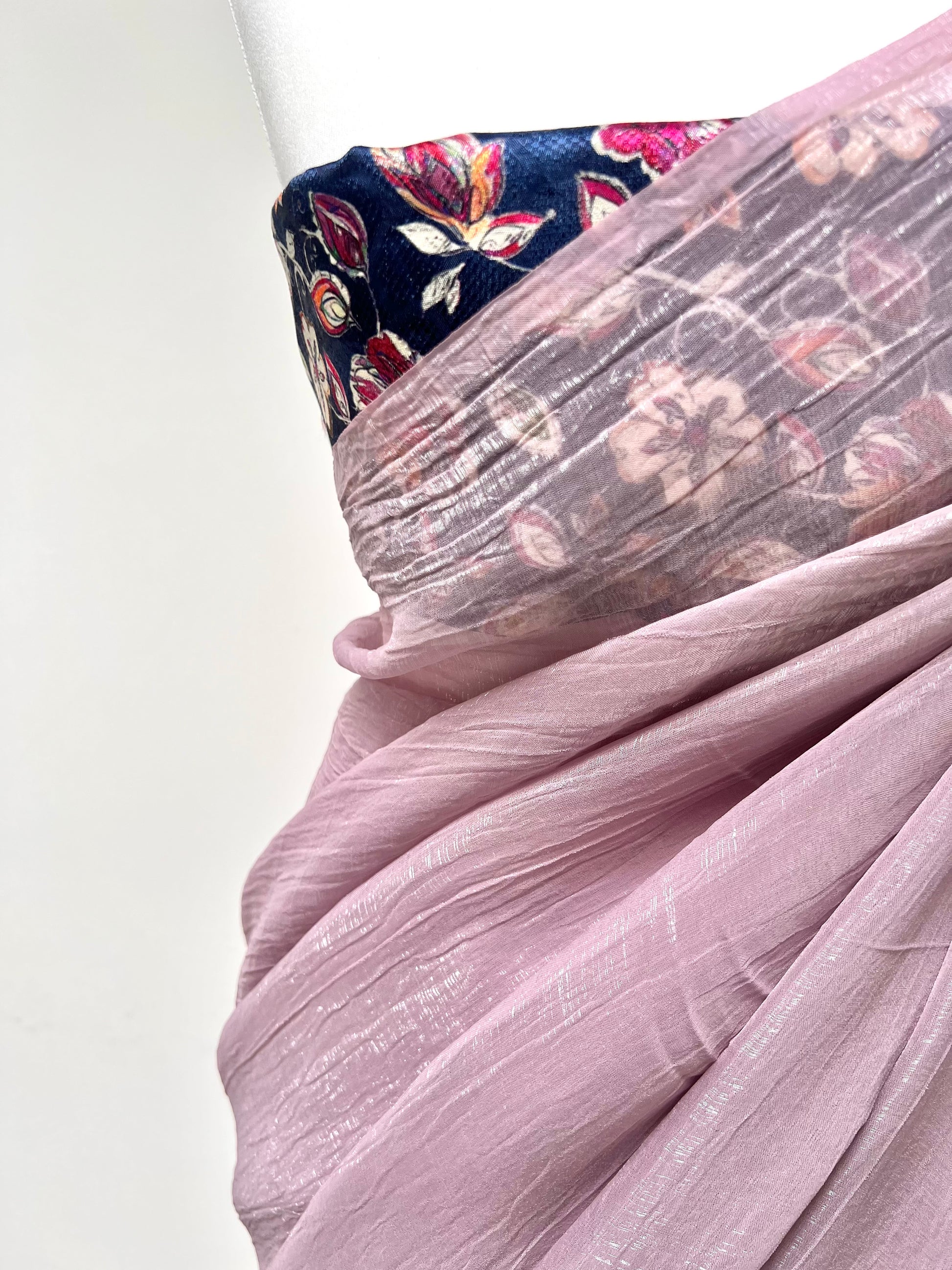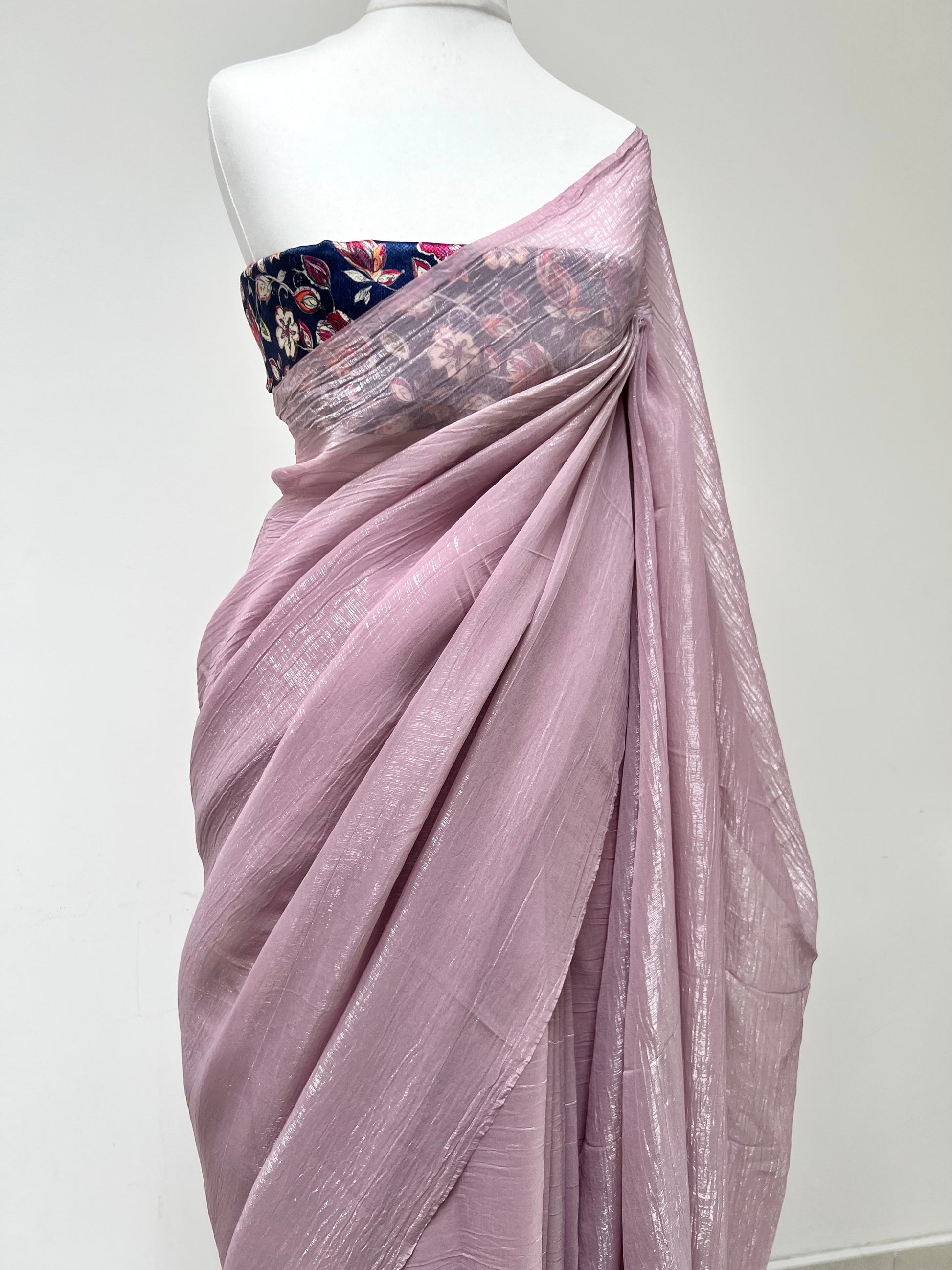 Lavendar crush chiffon saree with a crape silk blouse in navy S3015