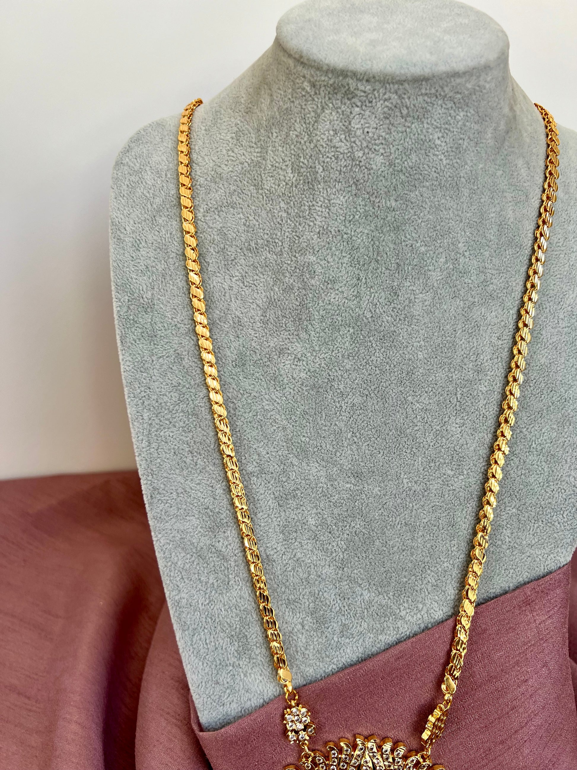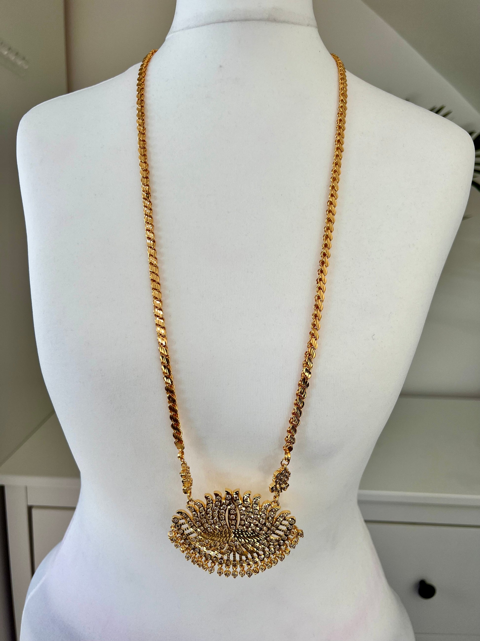 SOBIGA - Long 30inch lotus pathakkam necklace with white stones N3137