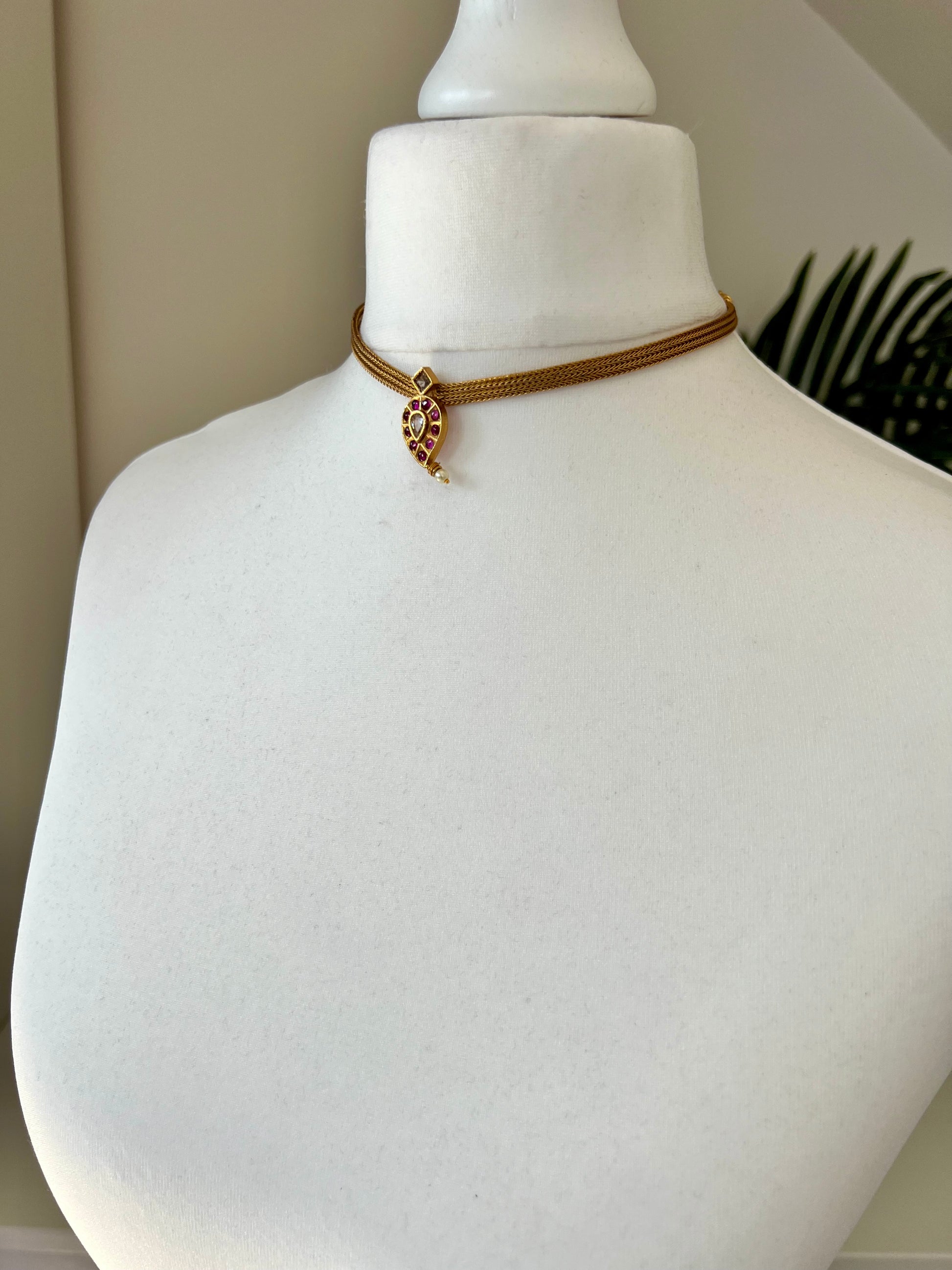 KIARA - Mango pendant gold choker necklace with small earrings N3115