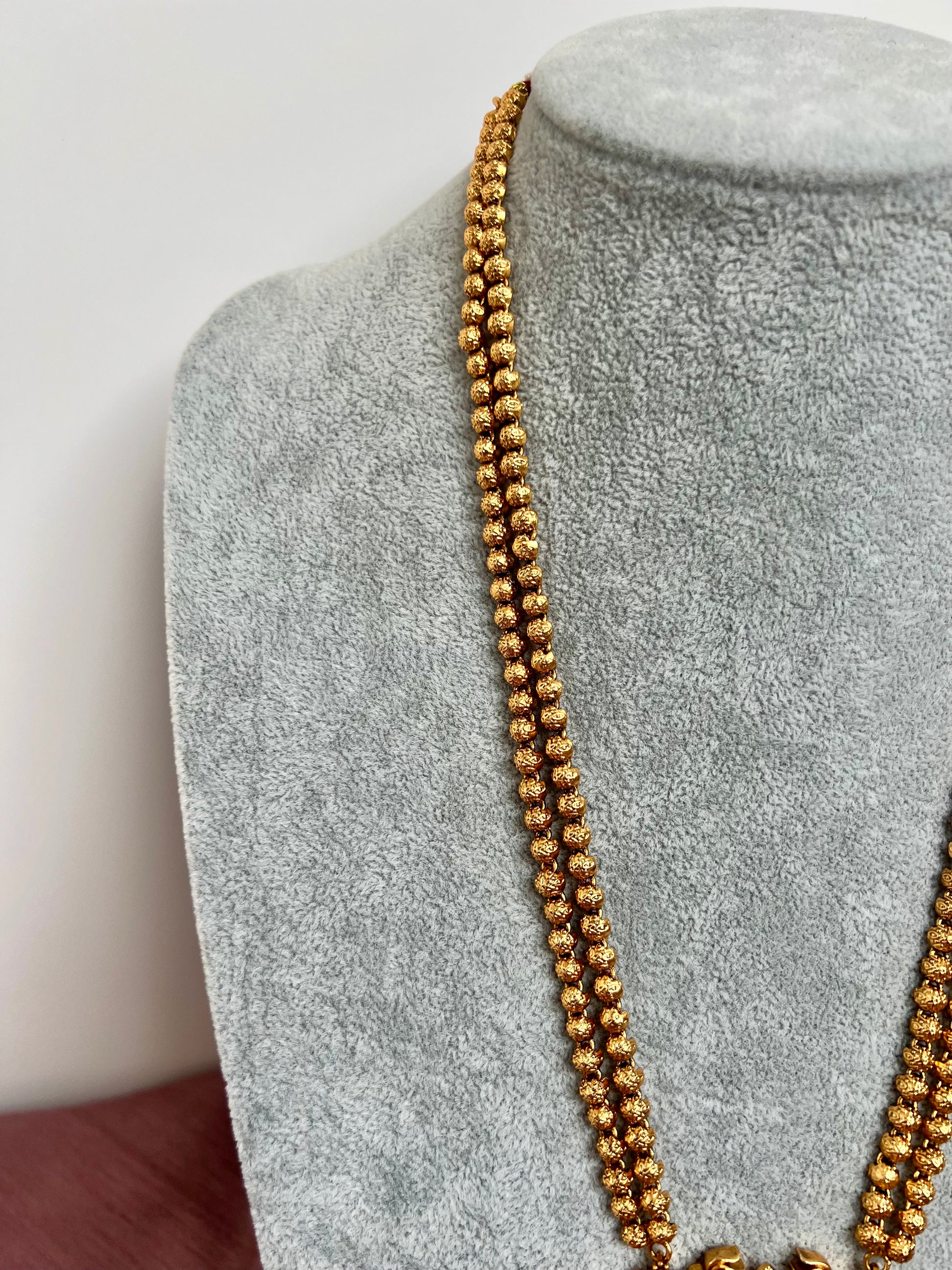 LALITHA - Antique matte gold necklace set in rubygreen with matching stud earrings N3016