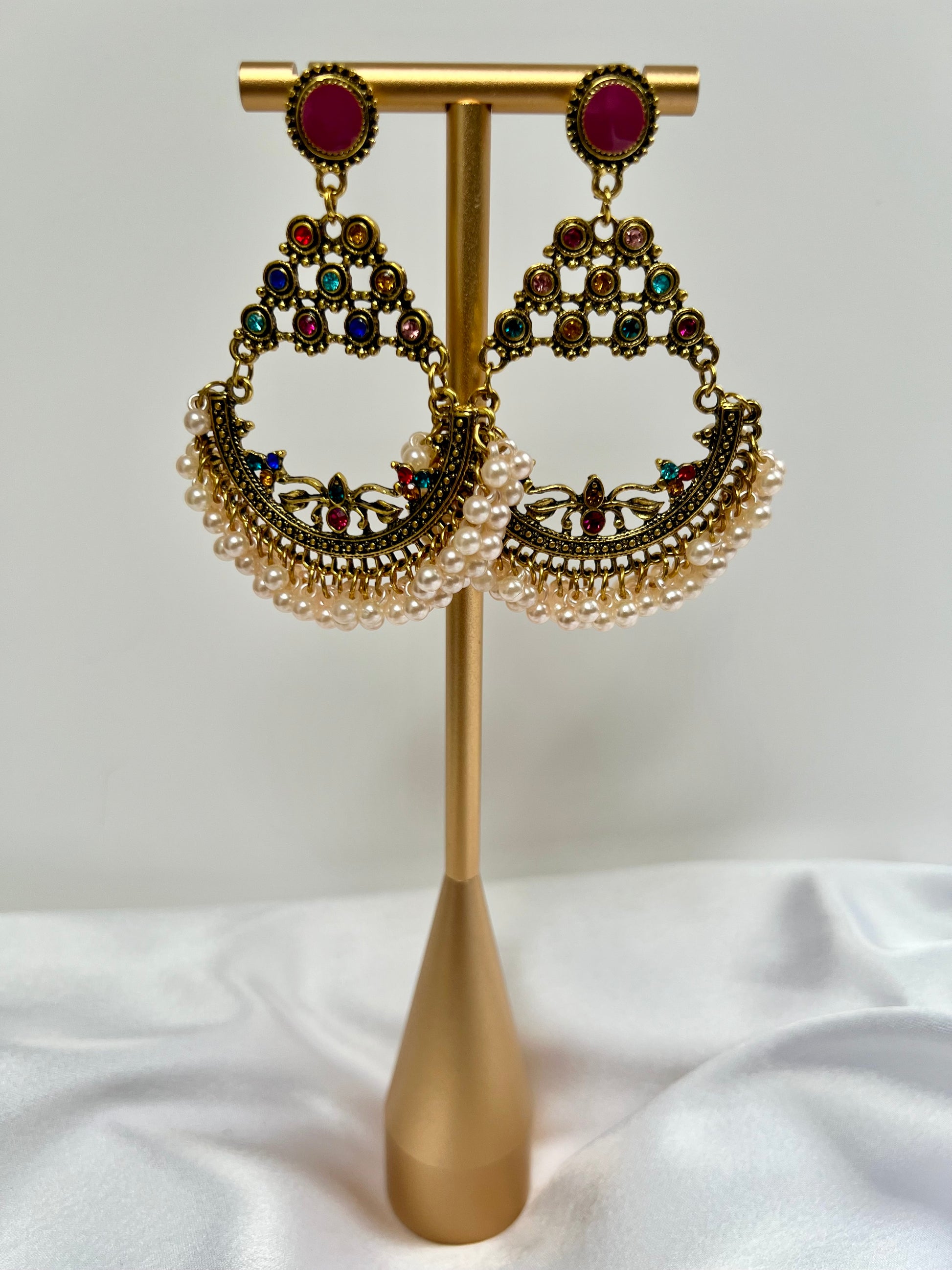 Multicoloured large flat earrings with pearls E3060