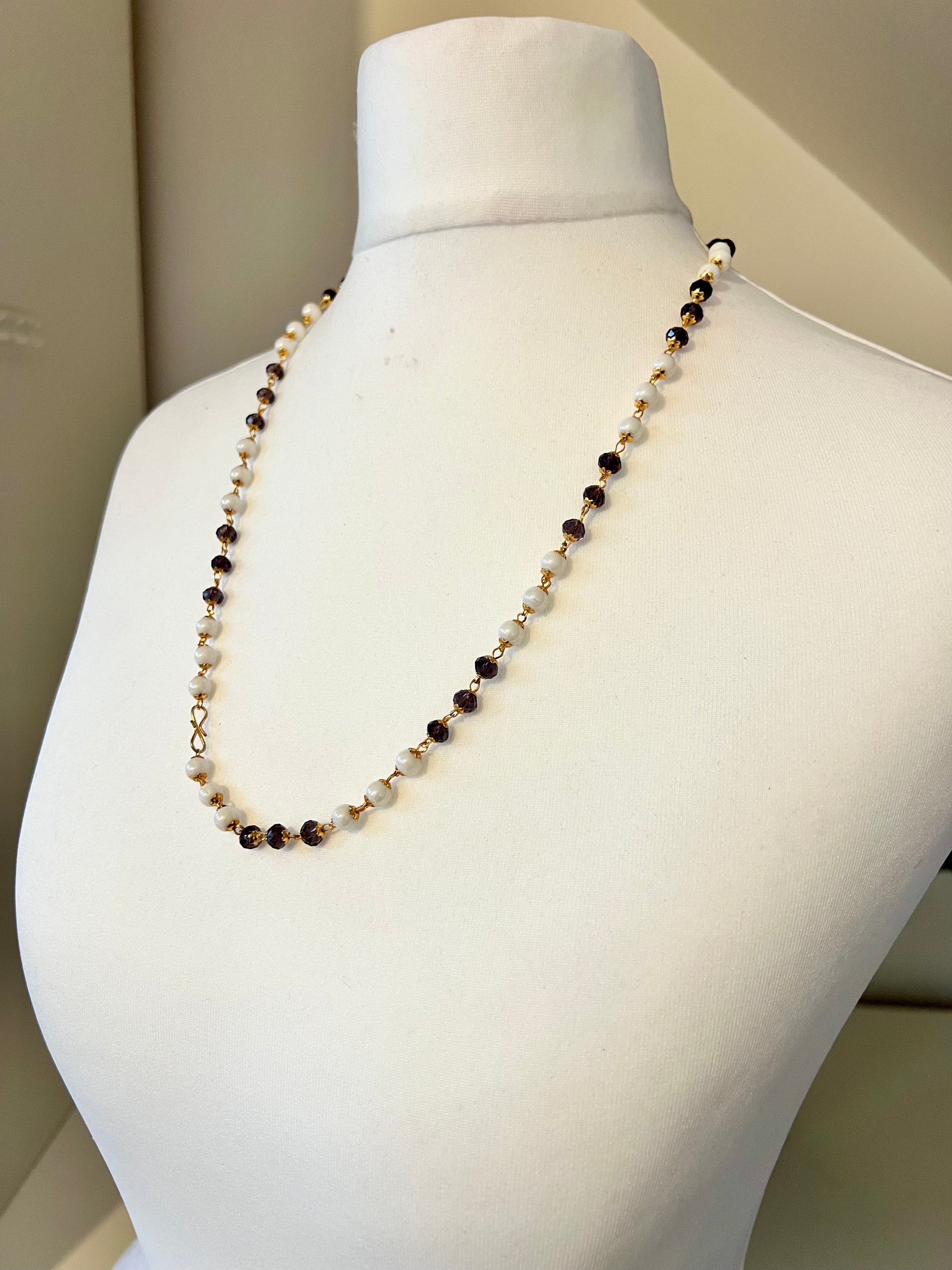 NITHRA - Simple long white and purple beads chain N3232