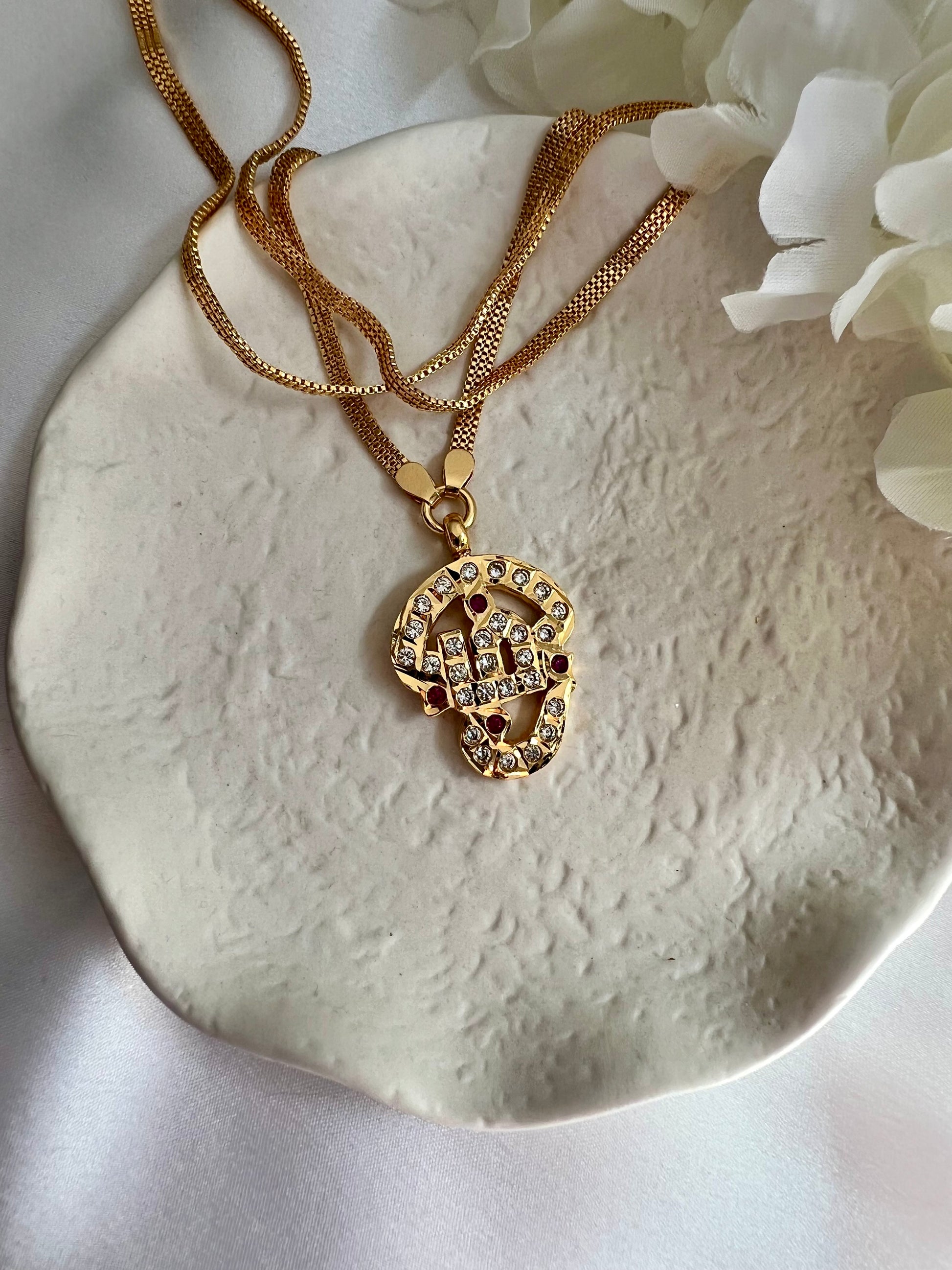 GEERTHI - Om pendant long necklace with ruby stones N3140