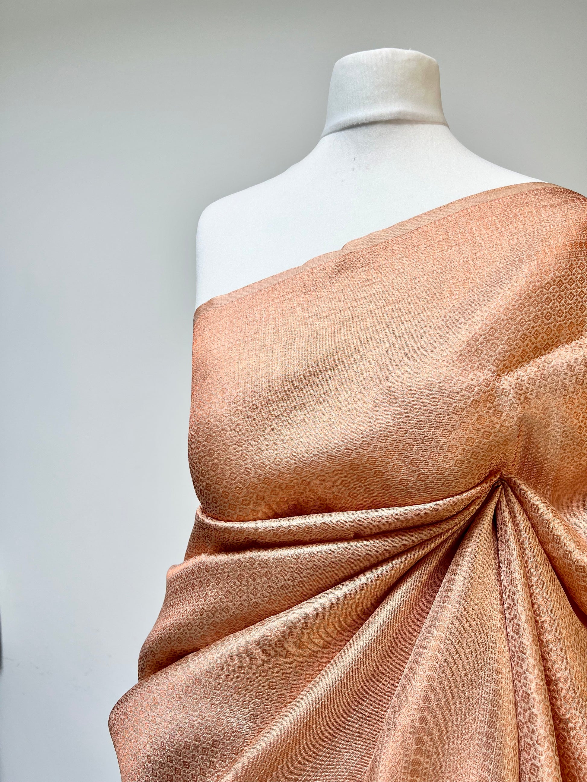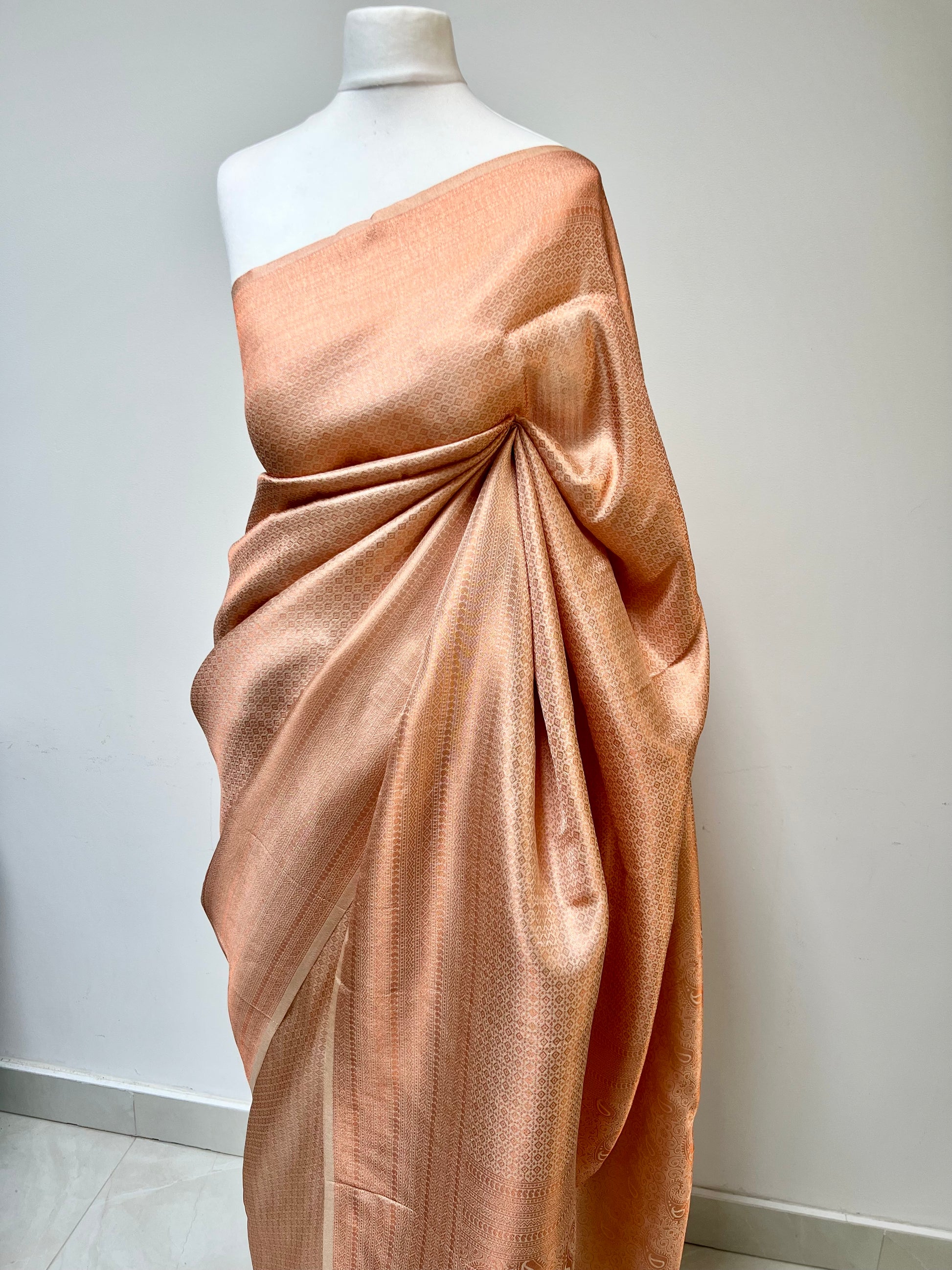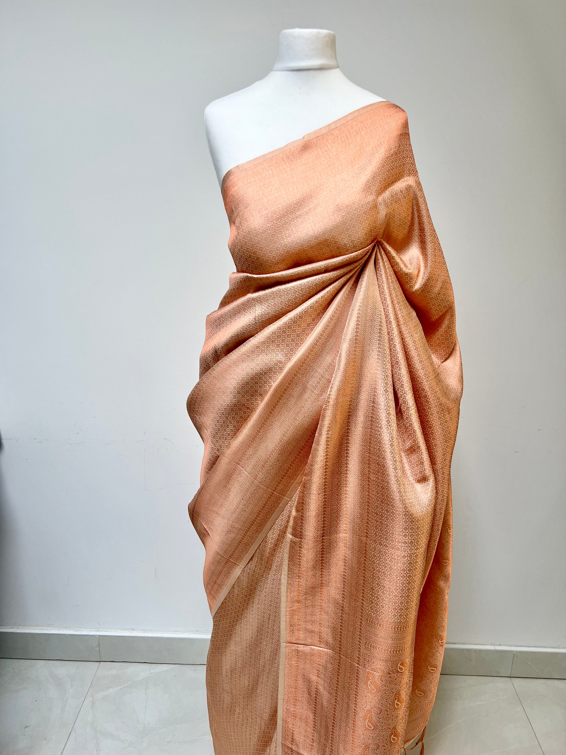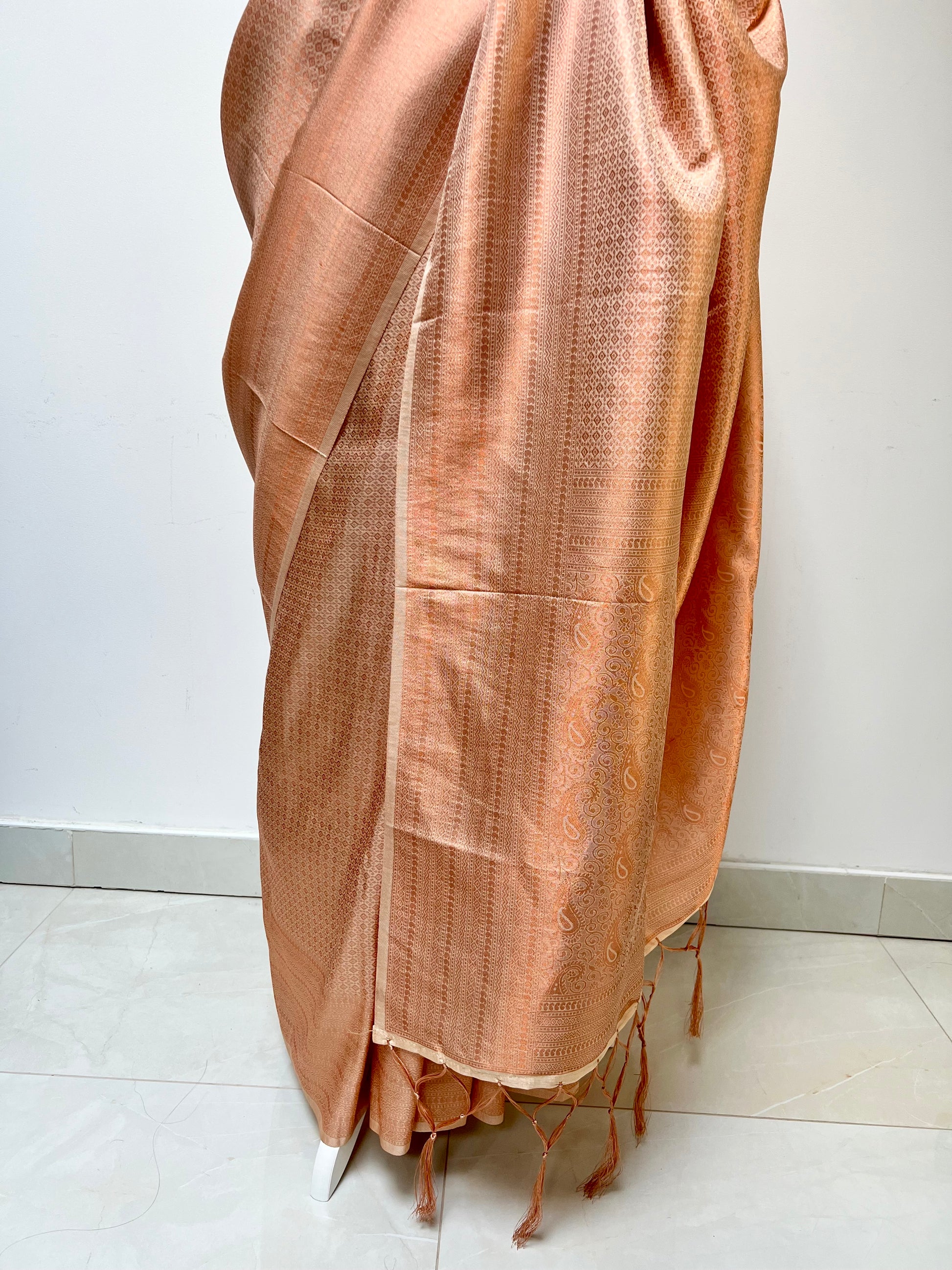 Rose gold Kubera silk saree with tassels and blouse material attached S3010