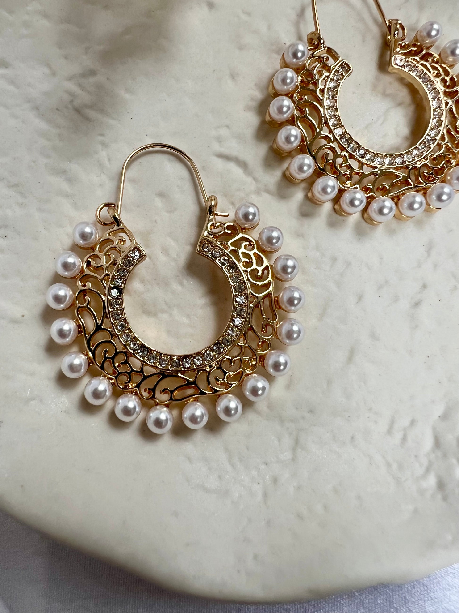 Round golden earrings with pearls E3055