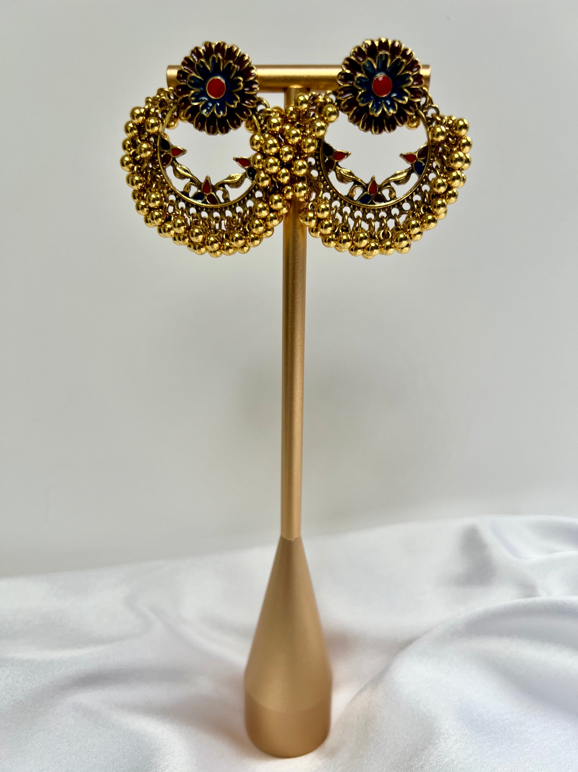 Round golden red and blue painted golden ball earrings E3069