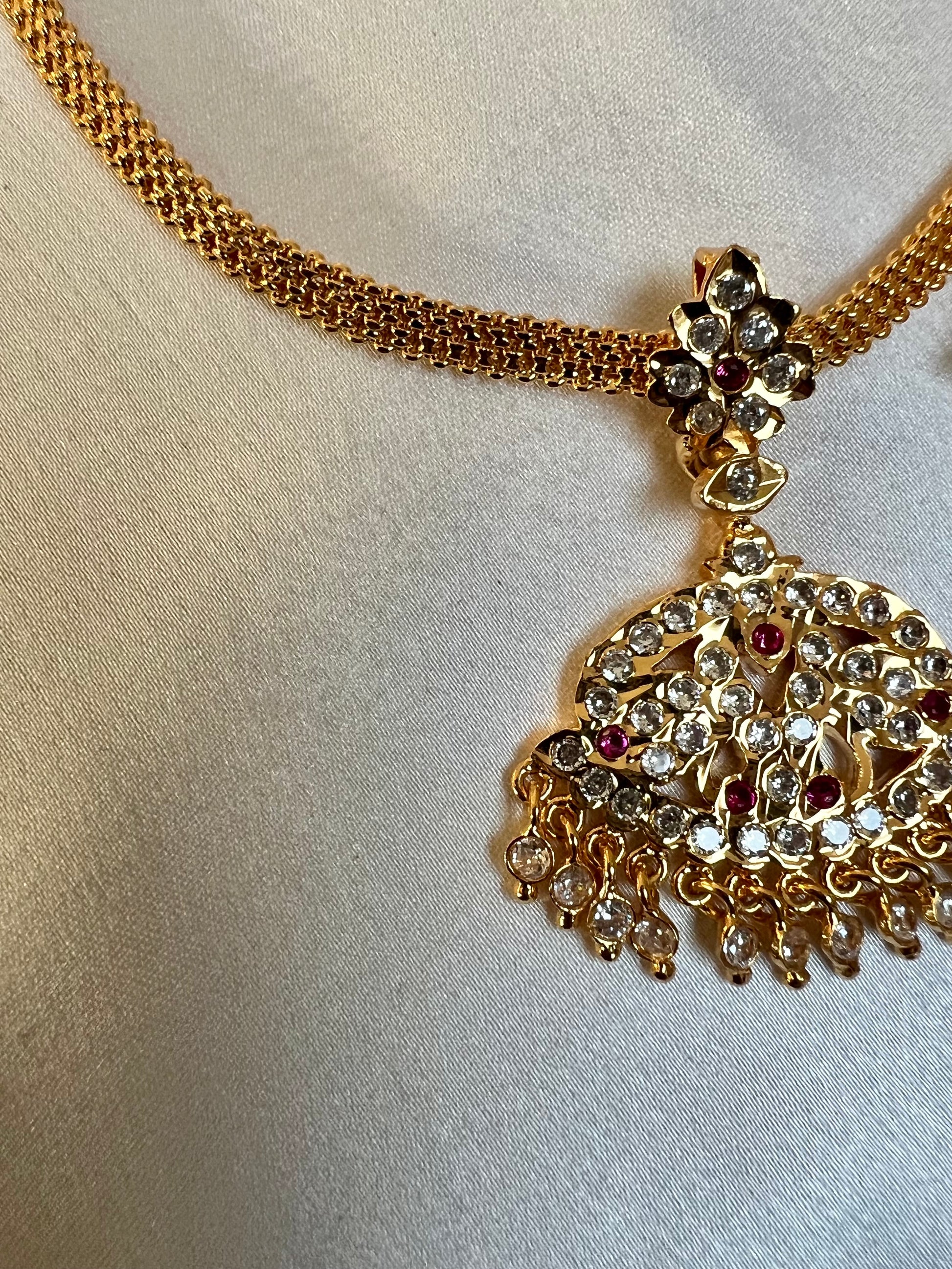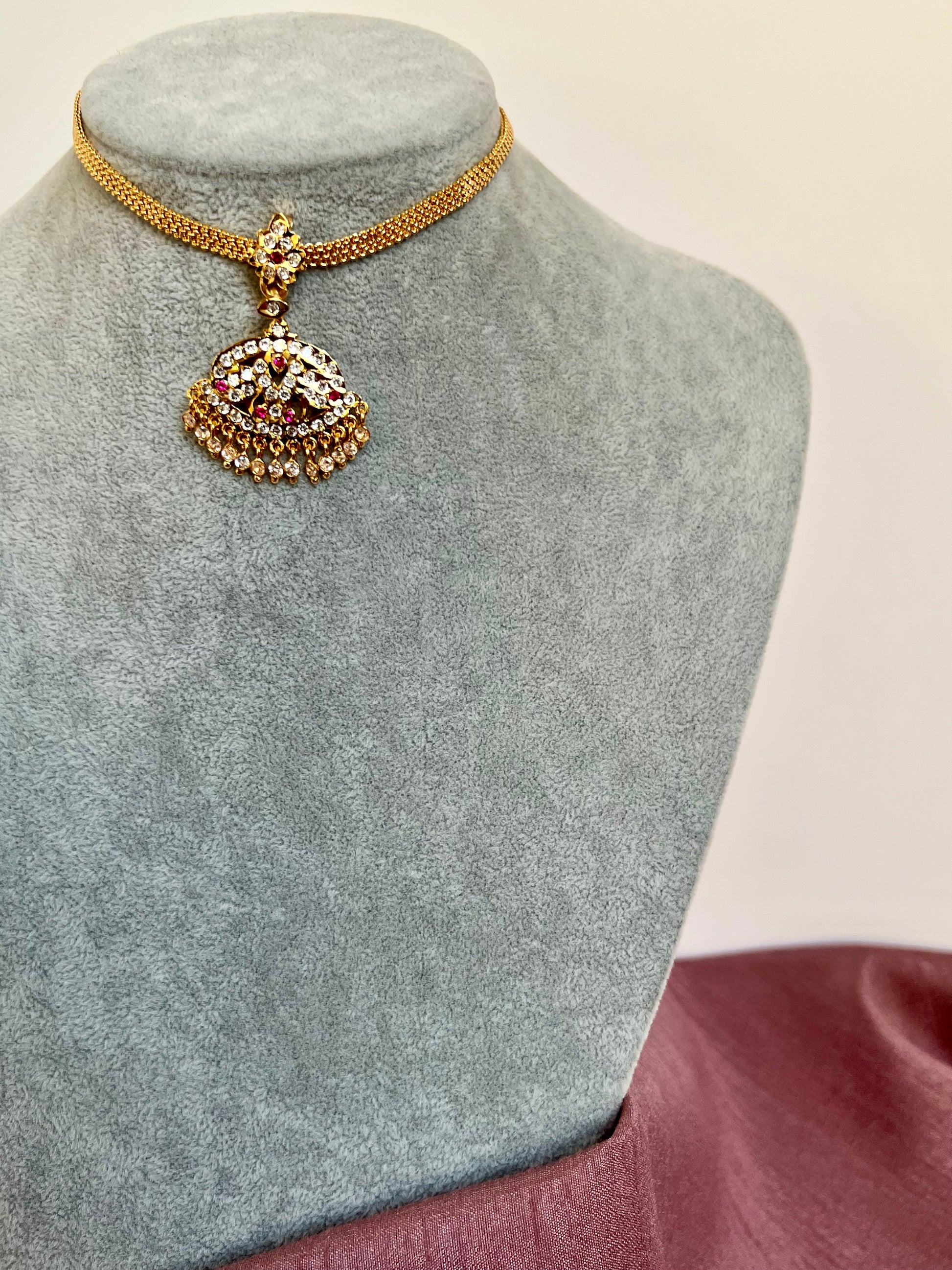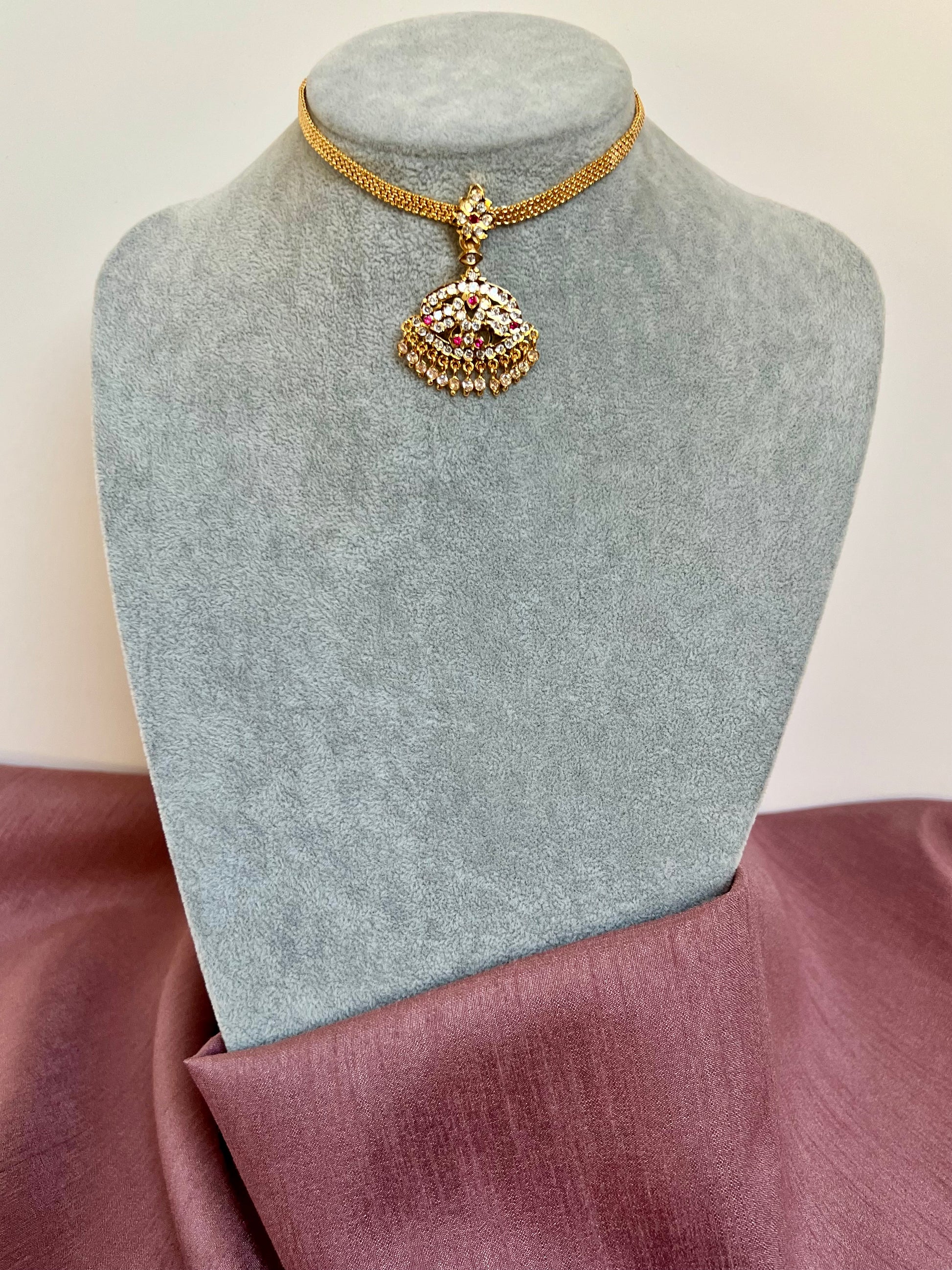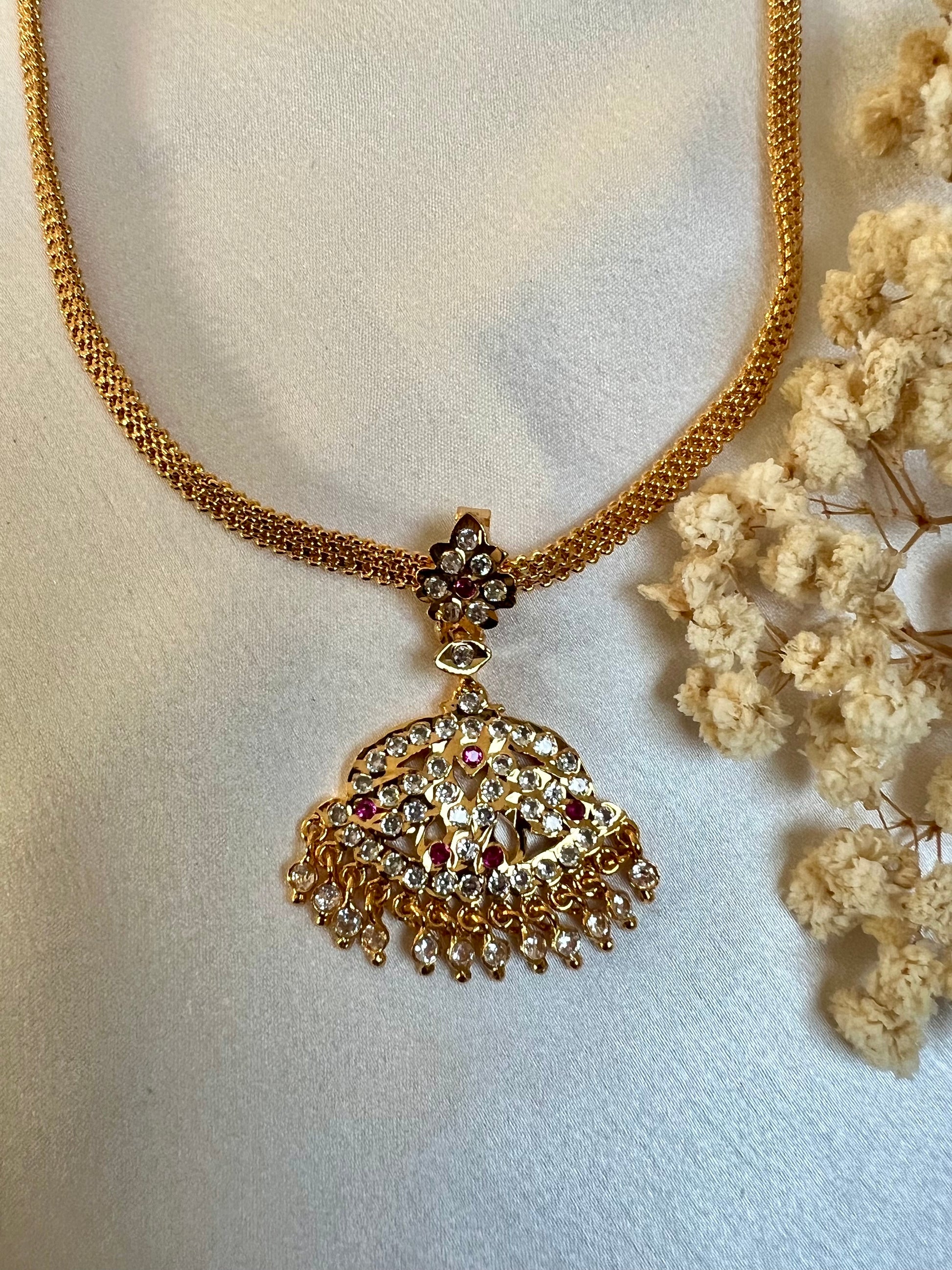 Simple bautiful short attigai embellished with white and ruby stones.