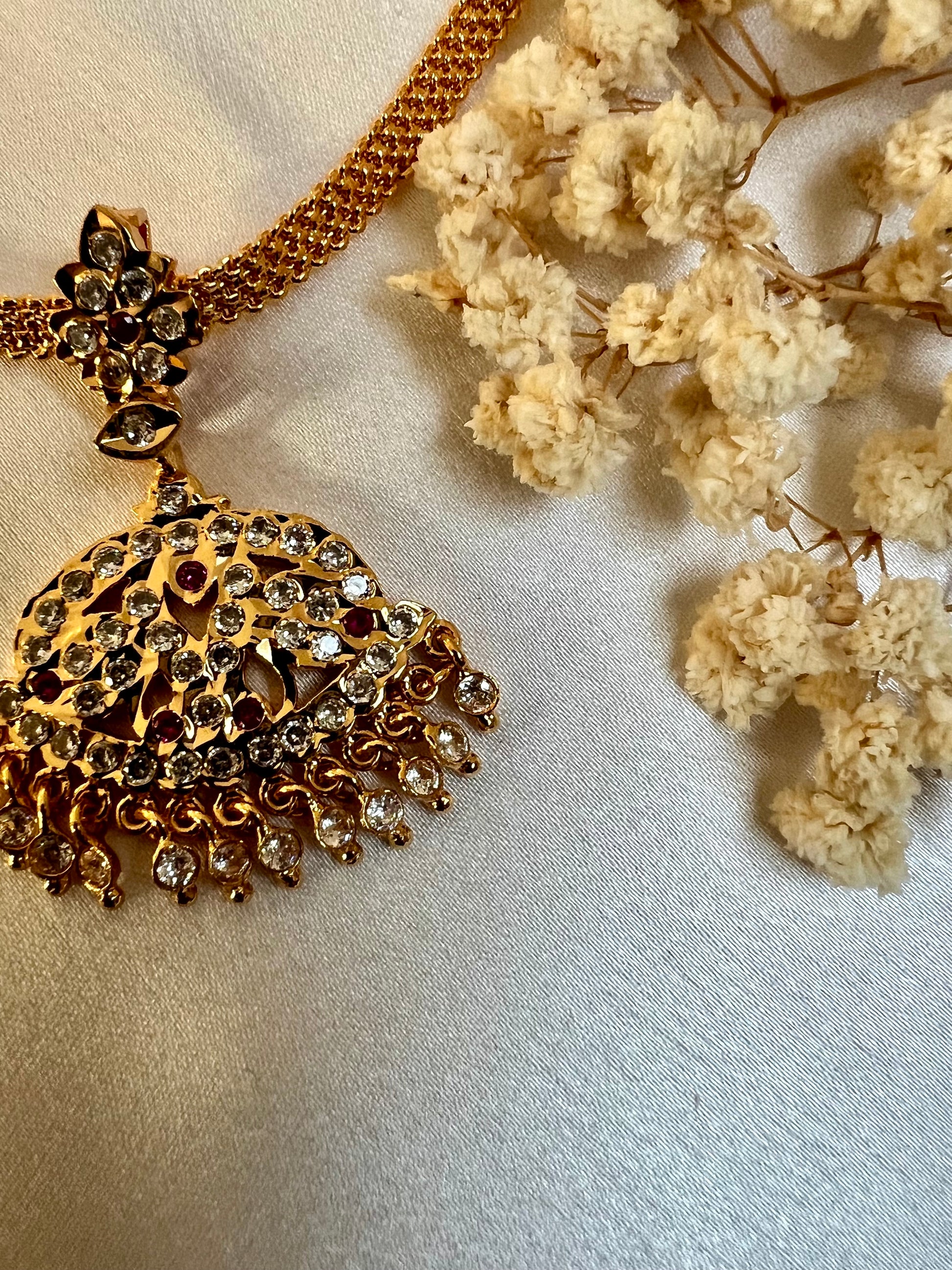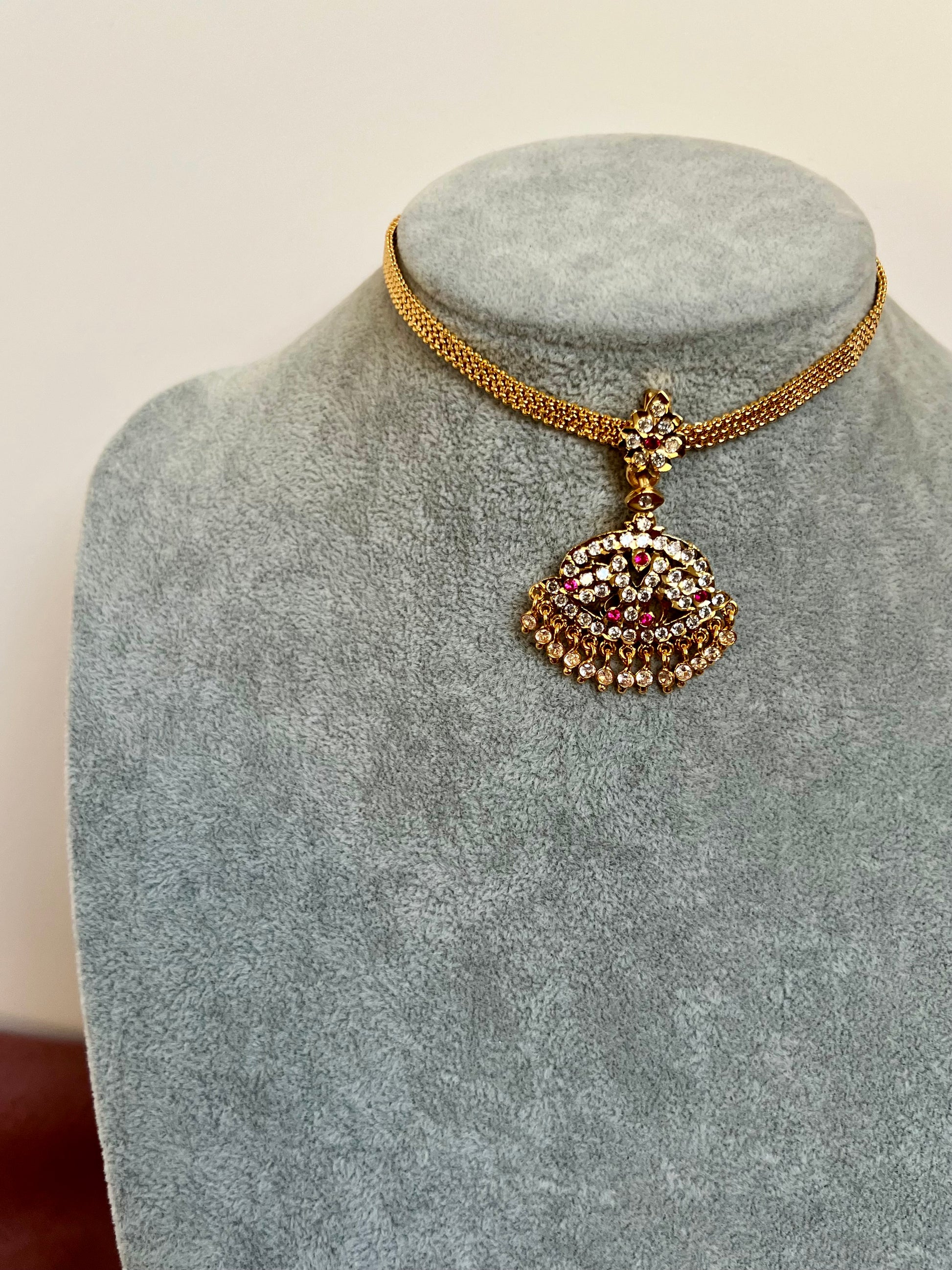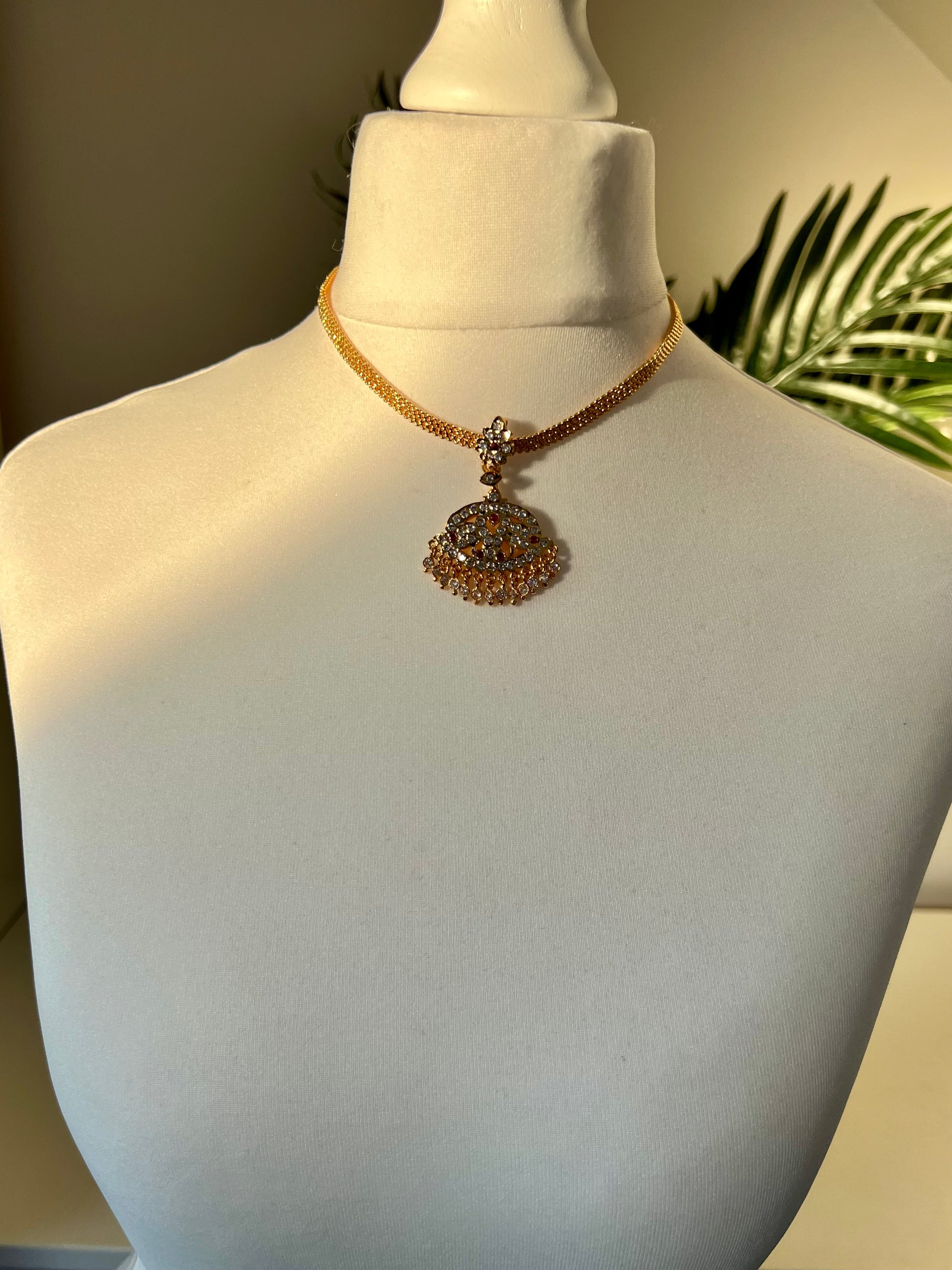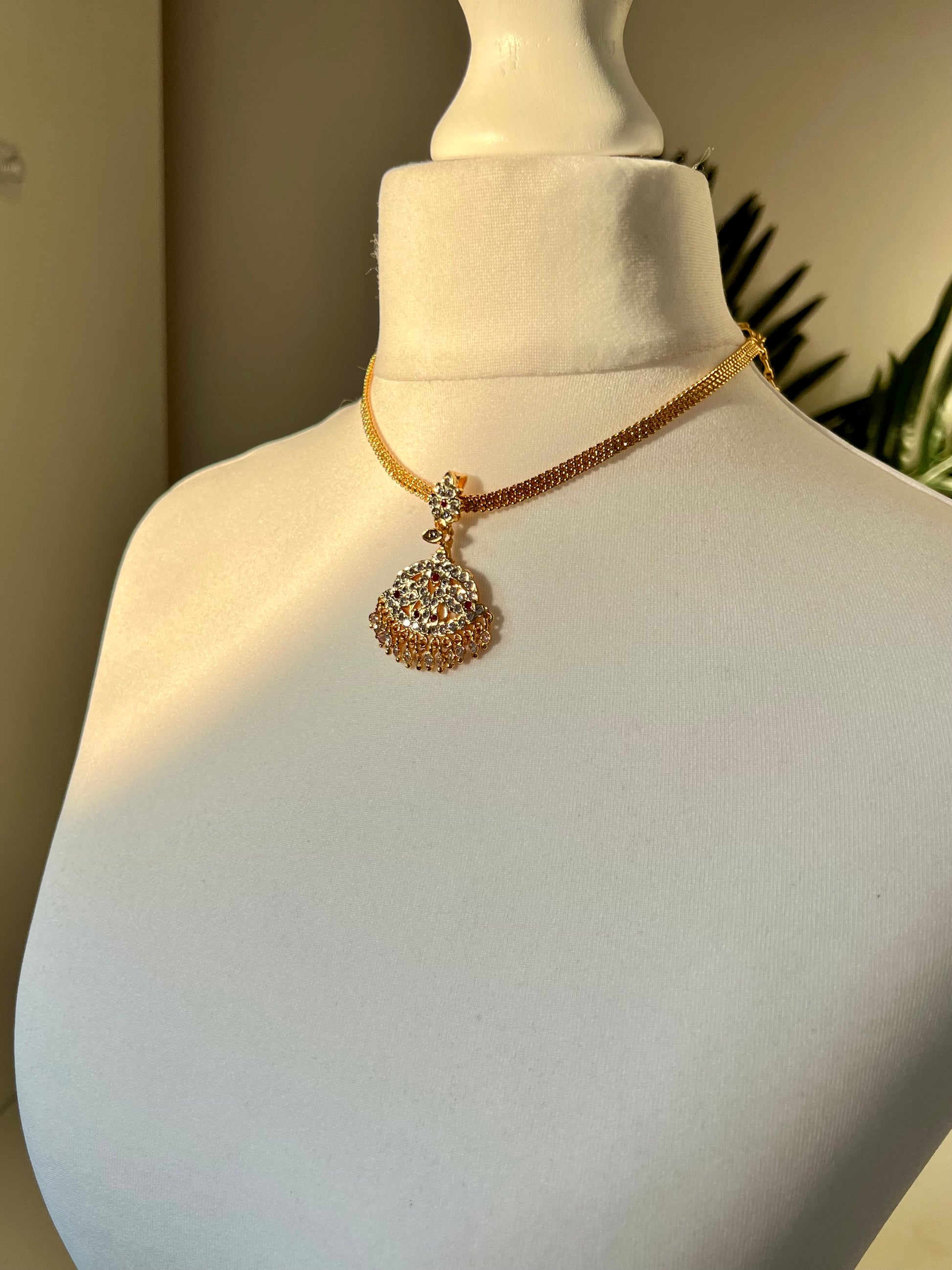 Simple bautiful short attigai embellished with white and ruby stones.