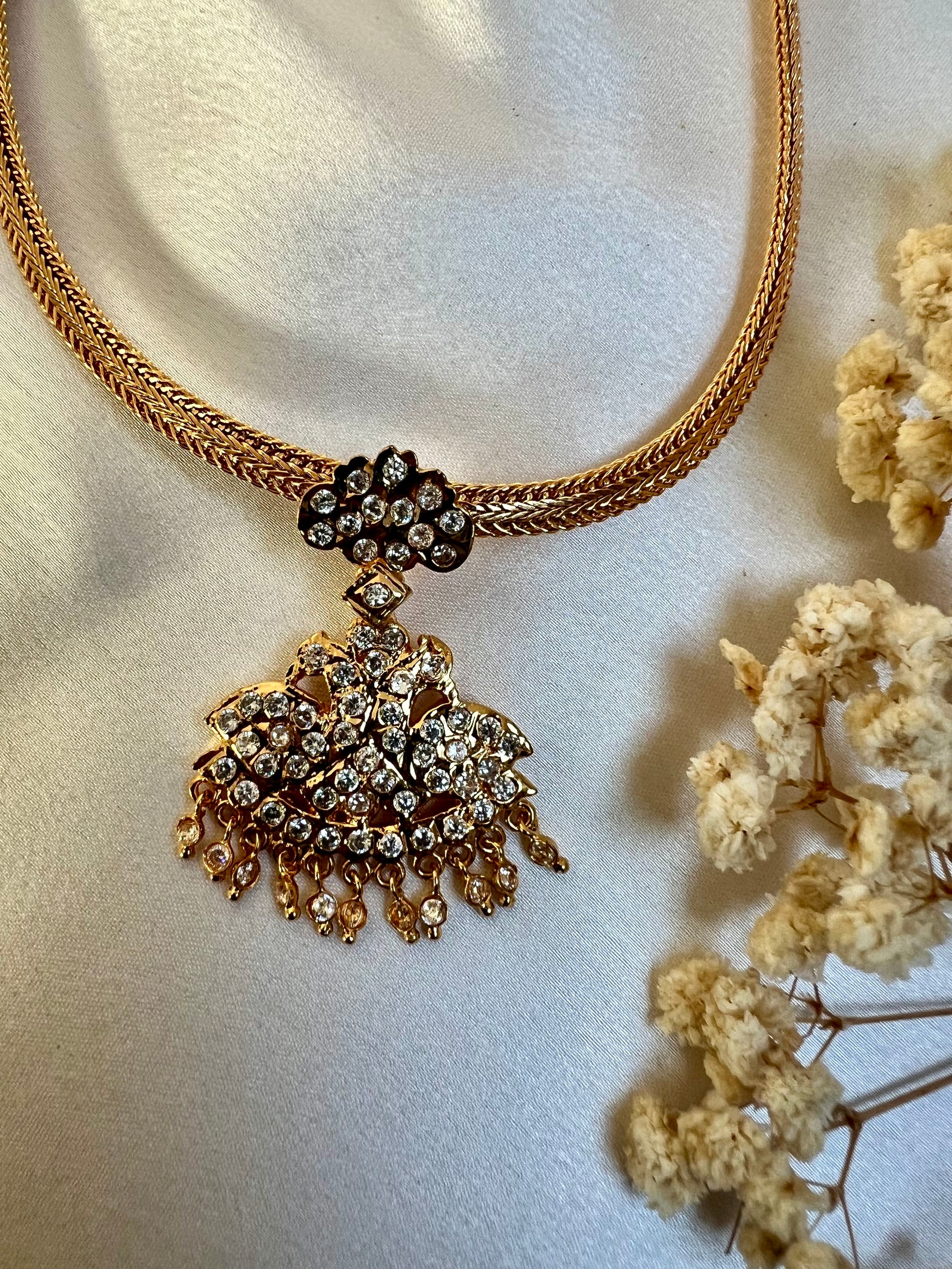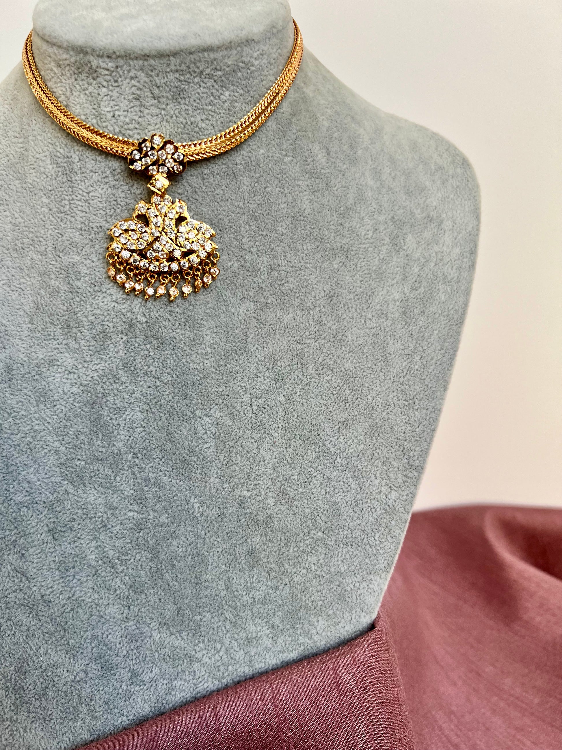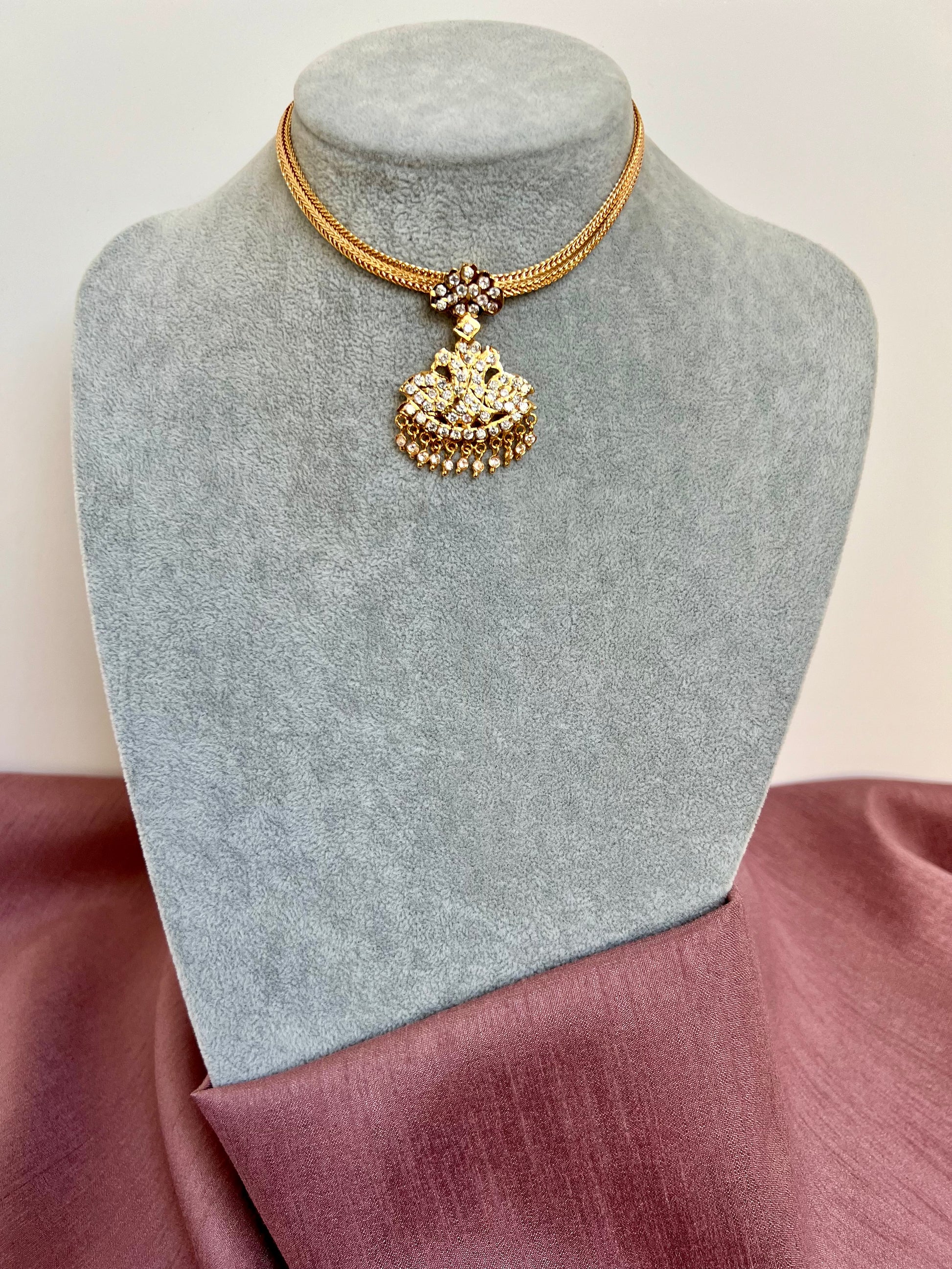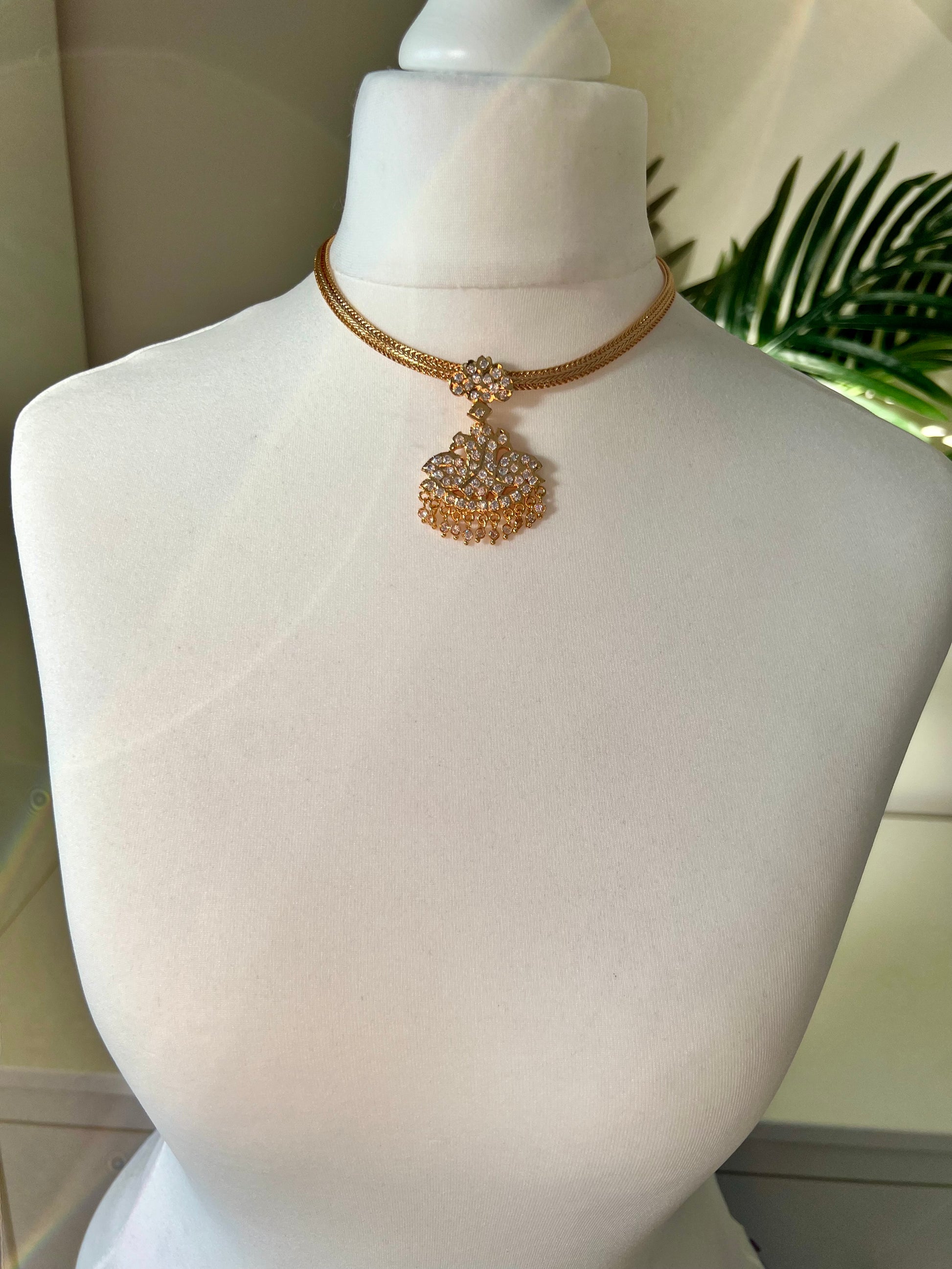 Simple short impon attigai embellished with white stones, perfect for traditional outfit.