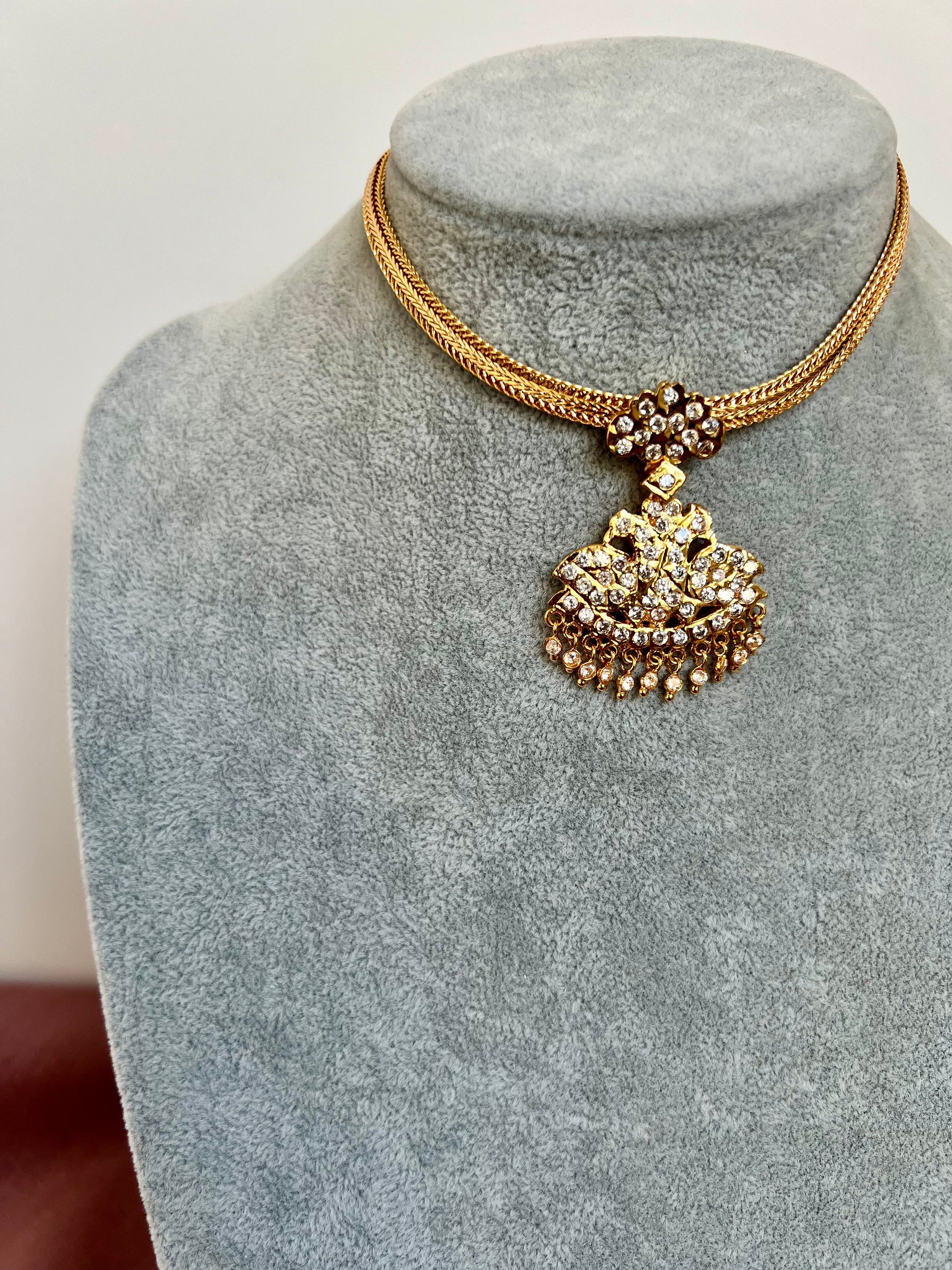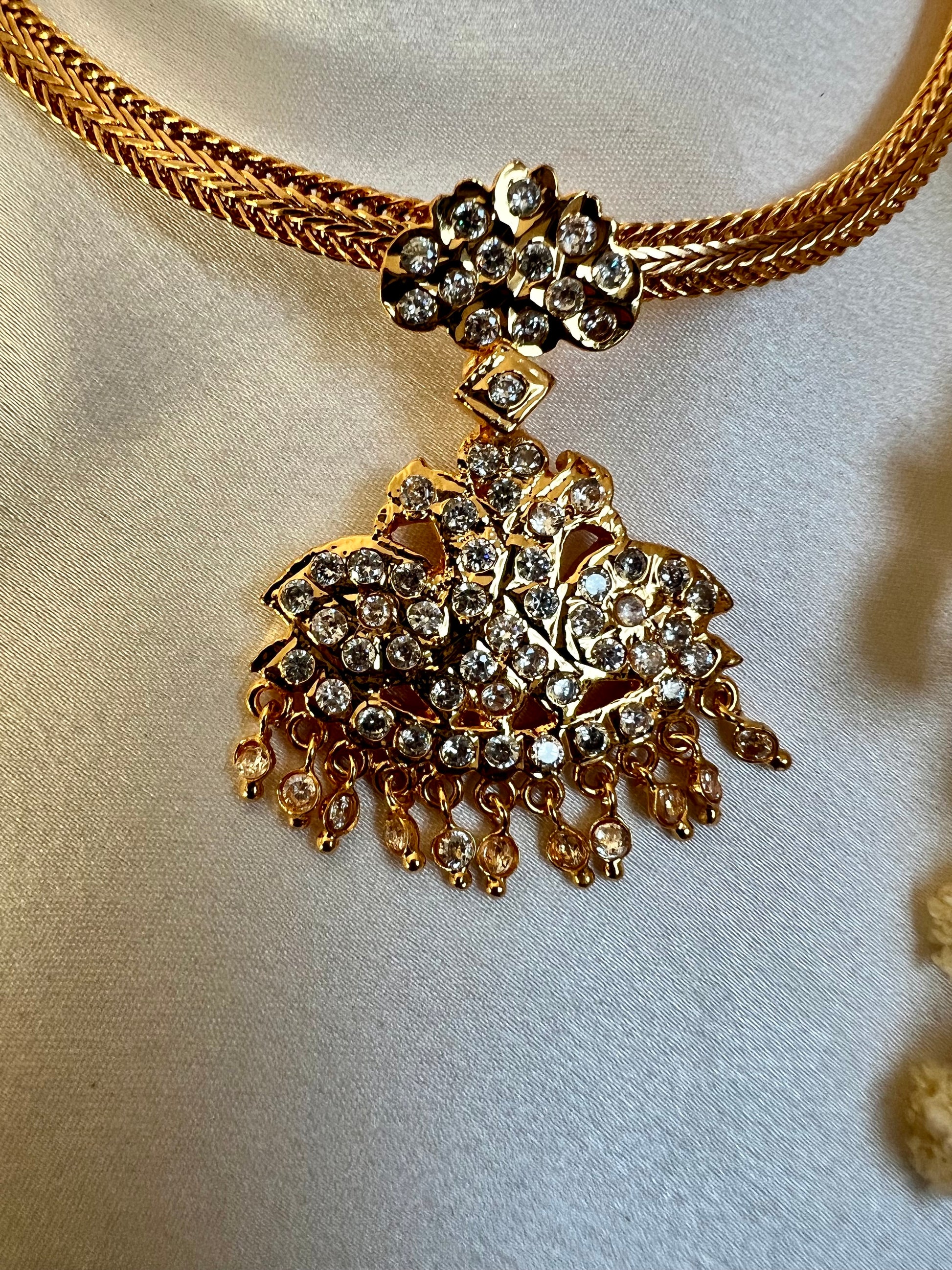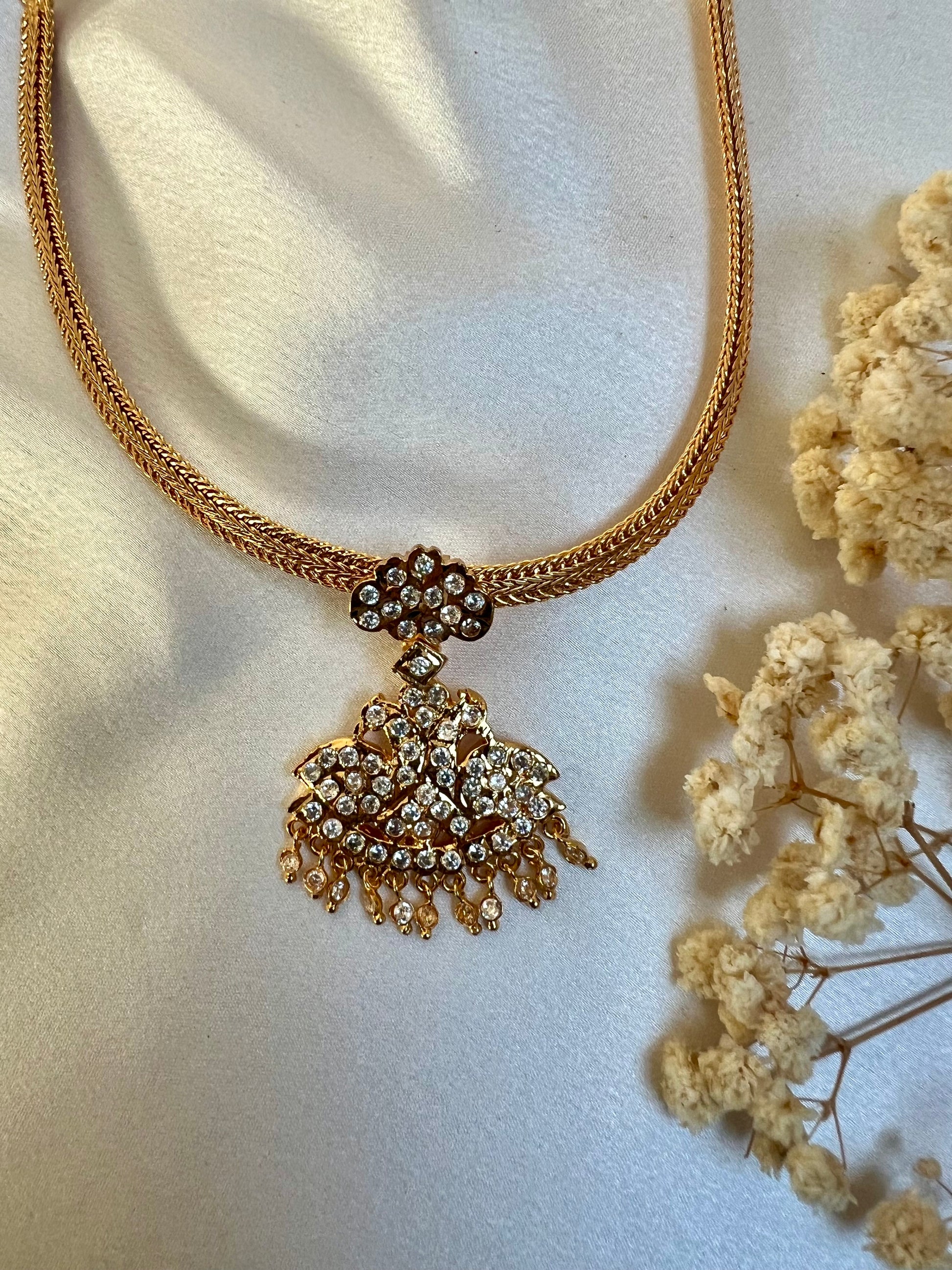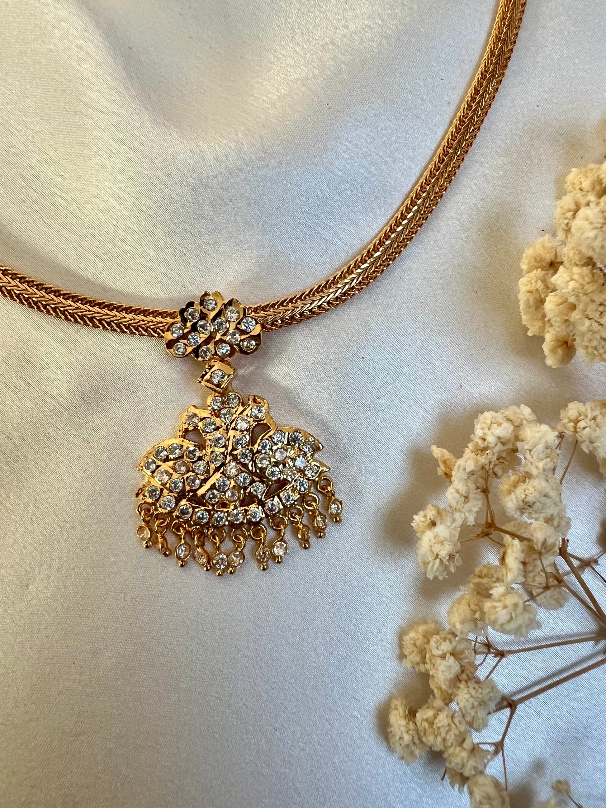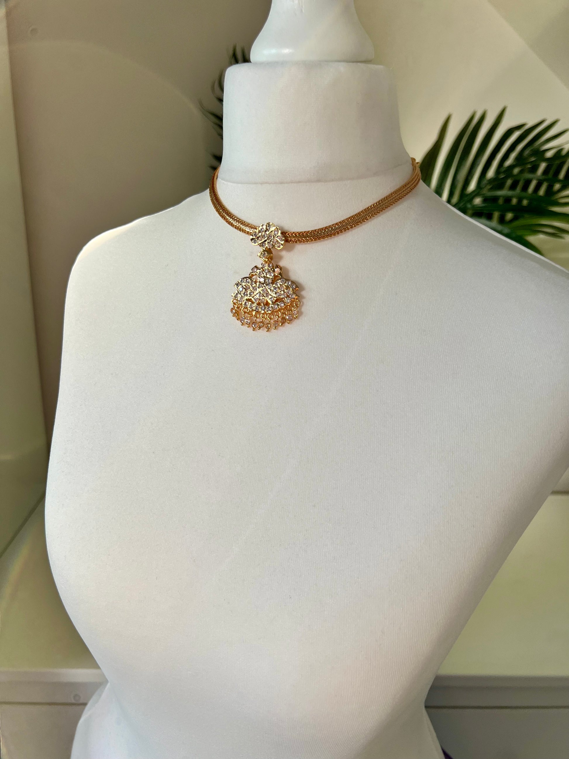 Simple short impon attigai embellished with white stones, perfect for traditional outfit.