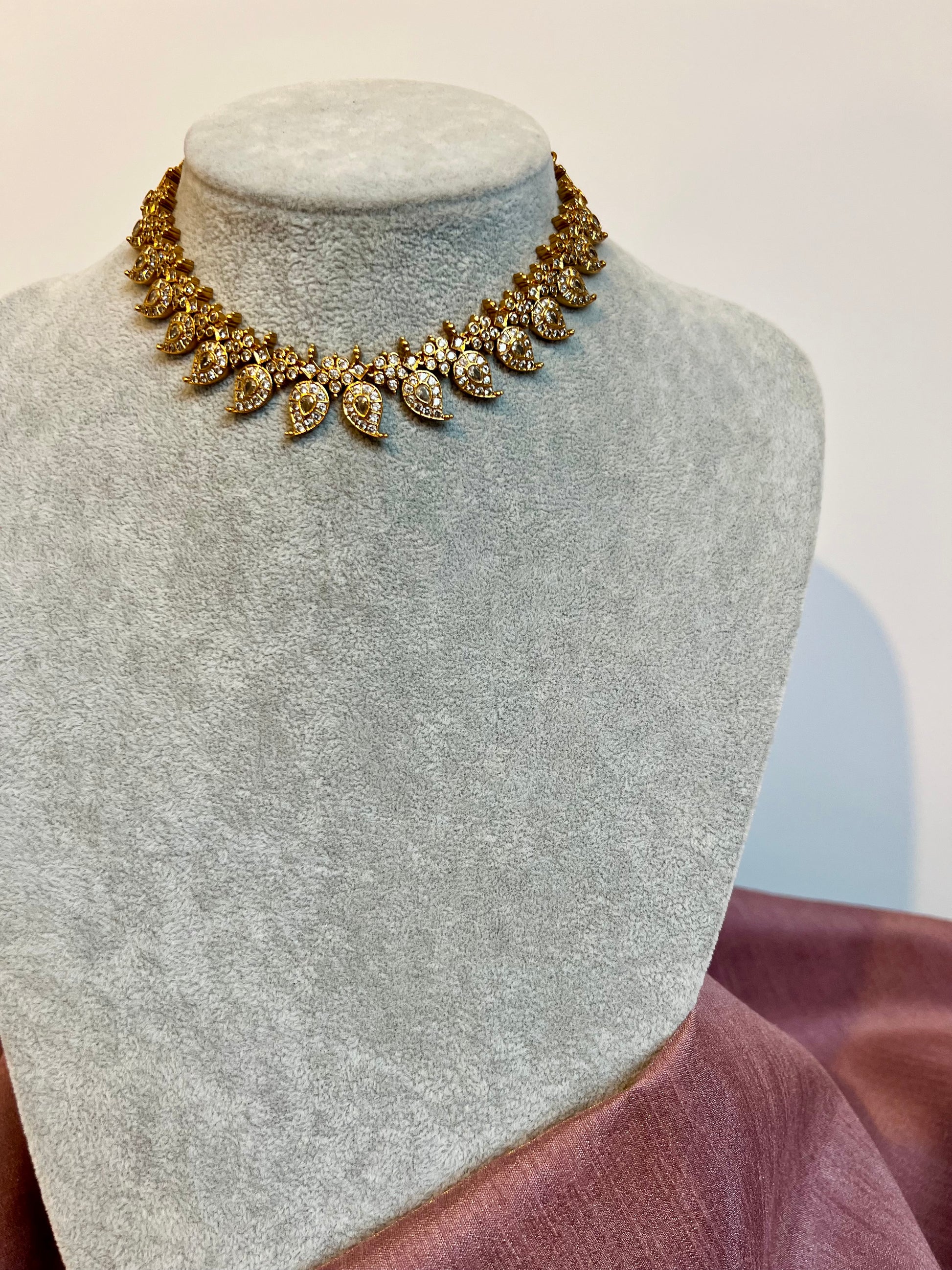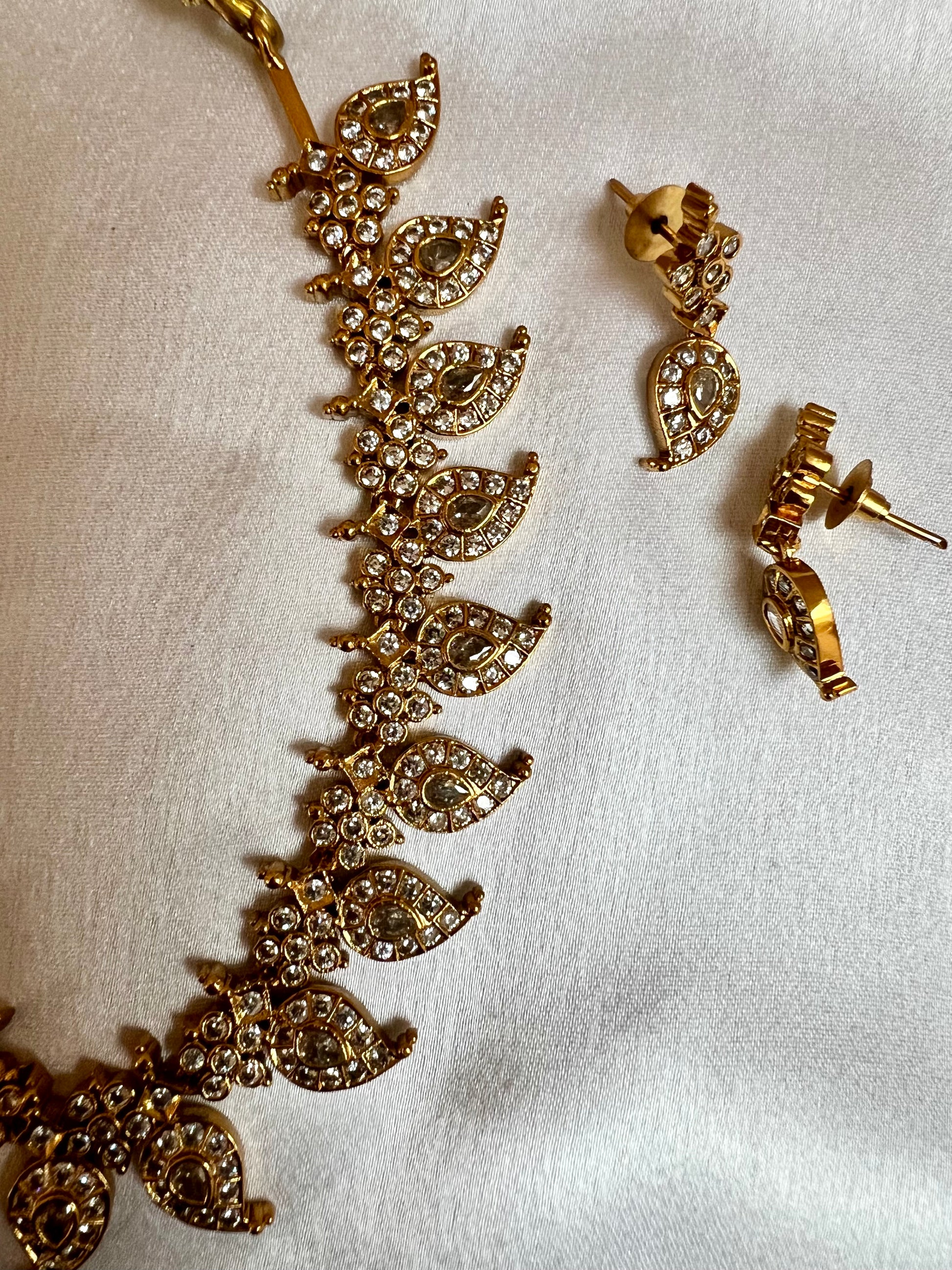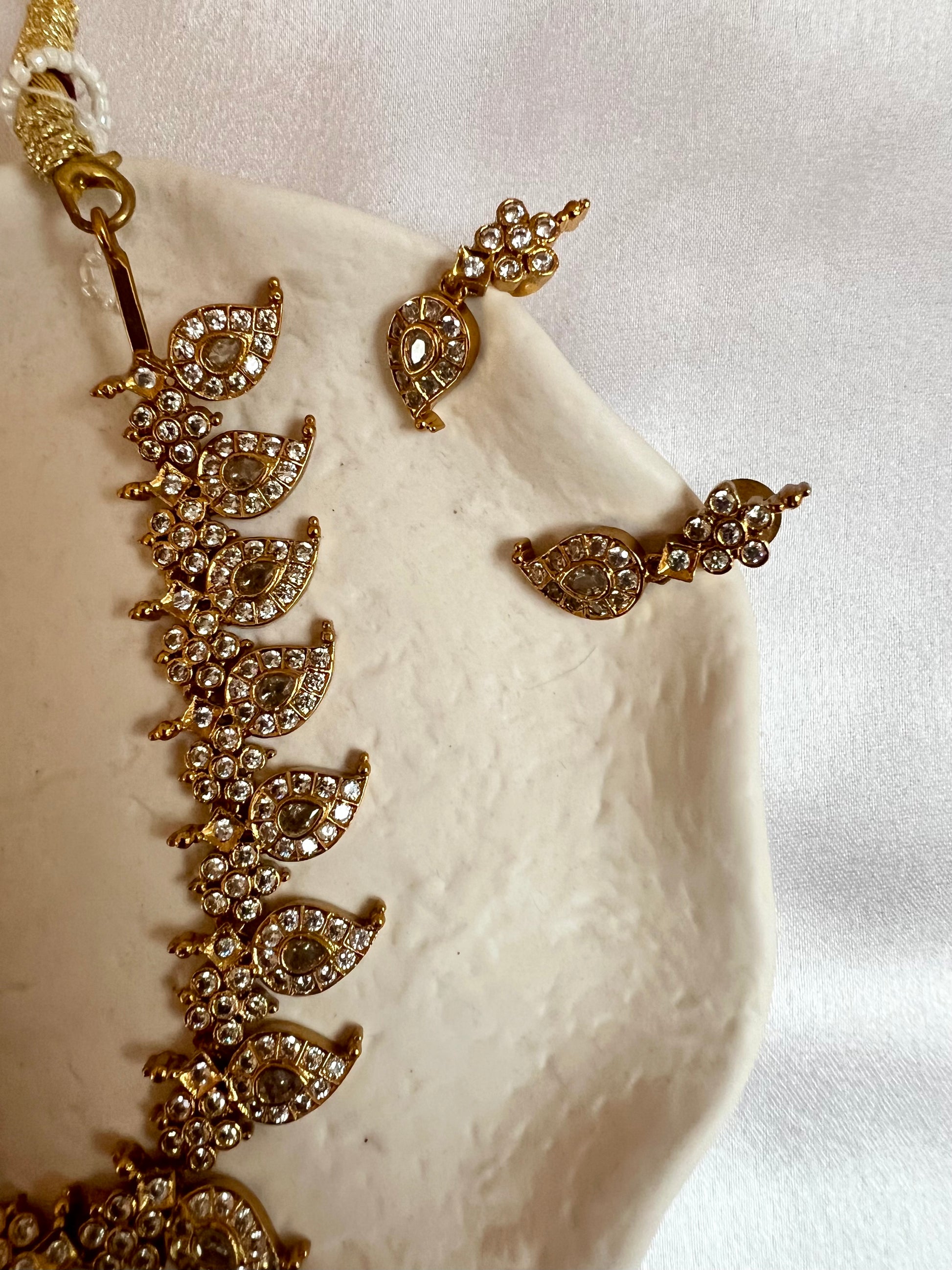 Short mango shaped motif necklace with matching small flat earrings, perfect for a simple wedding look, or wear it as a bride and spice it up with our matching THUVIRA necklace.
