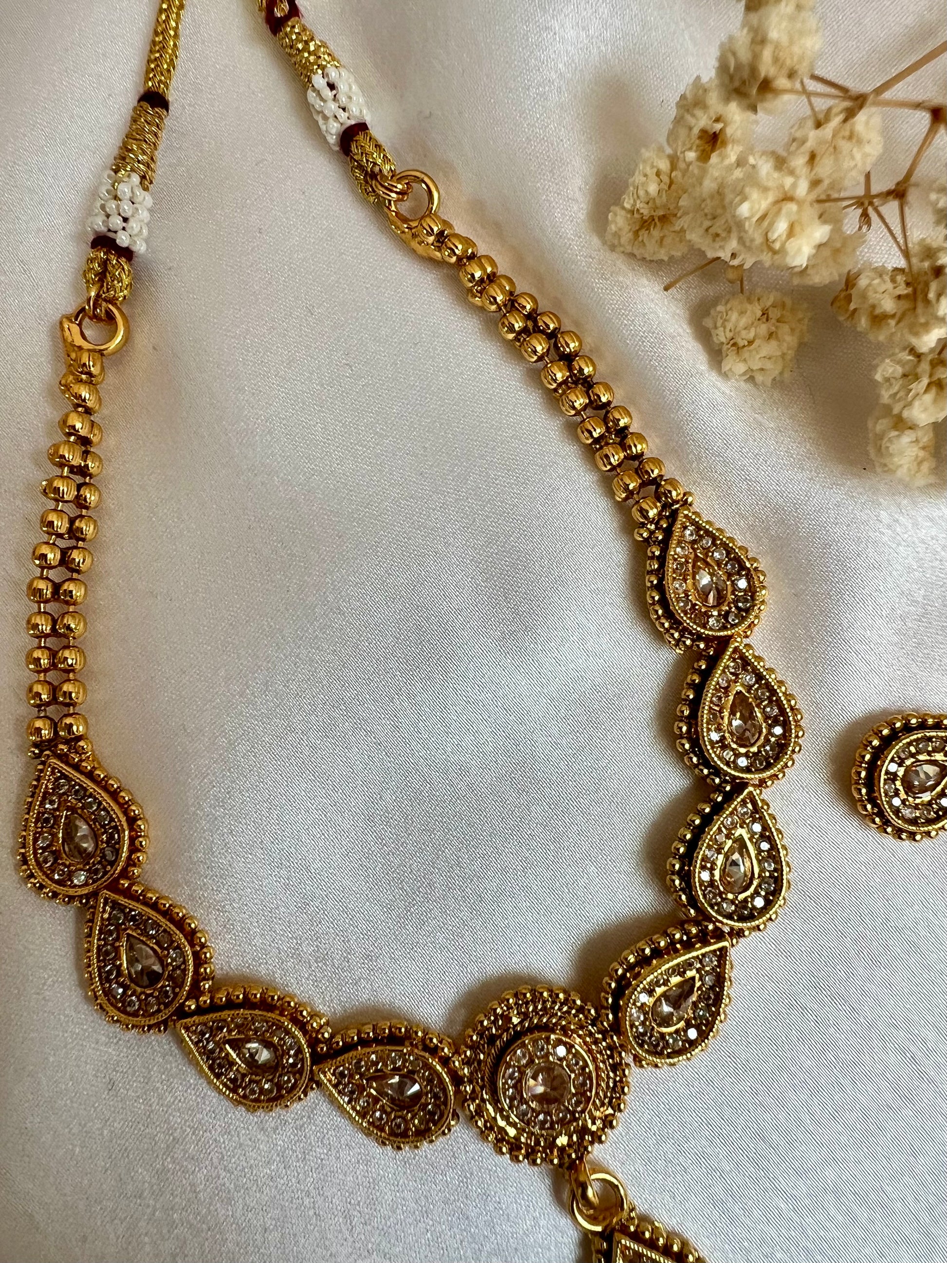 AVIRA - Short white cubic zirconia stoned gold necklace with matching earrings N3059