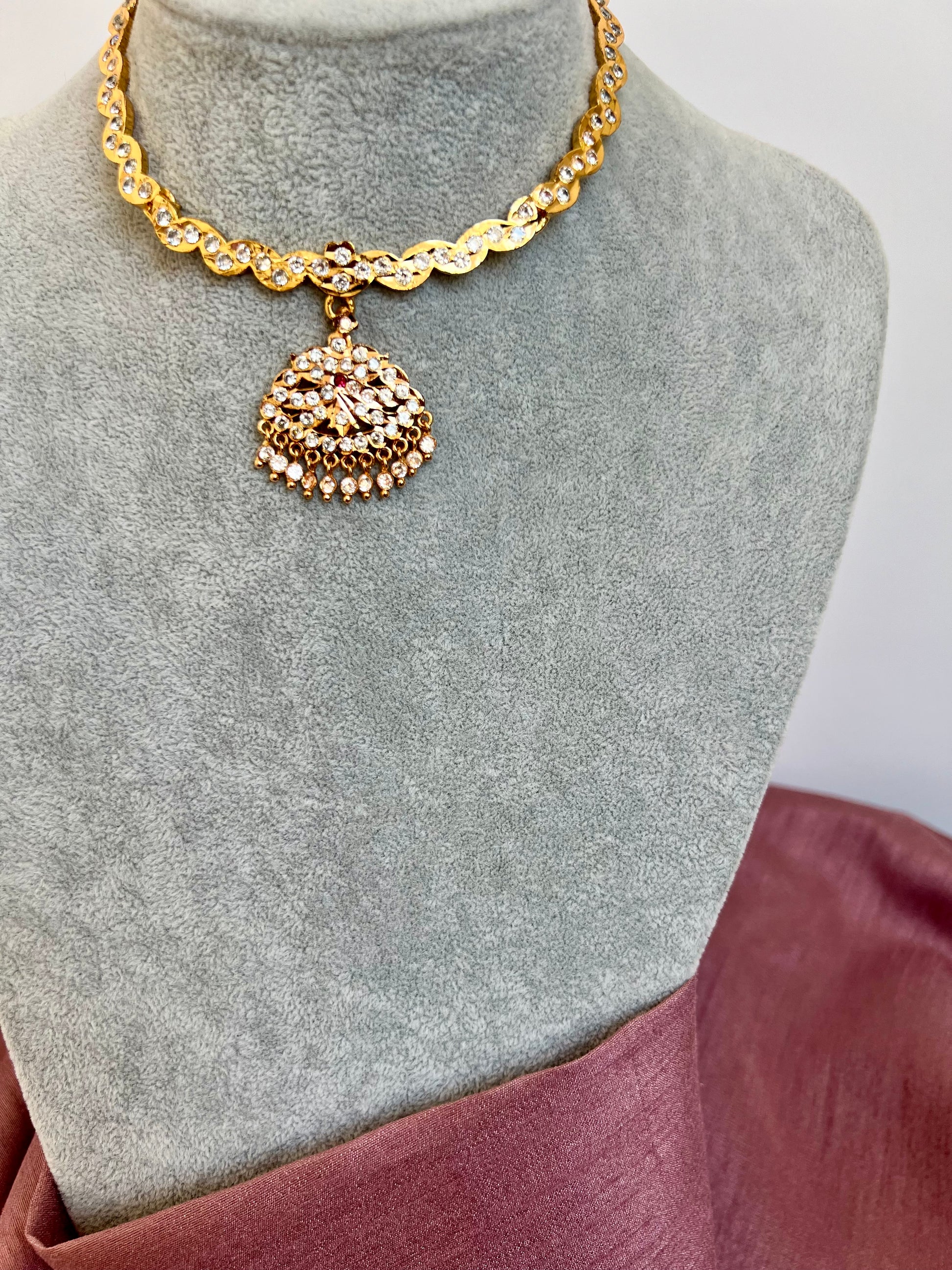 Simple South Indian attigai traditional necklace perfect for a traditional look or pair with one of our long Impon necklaces.