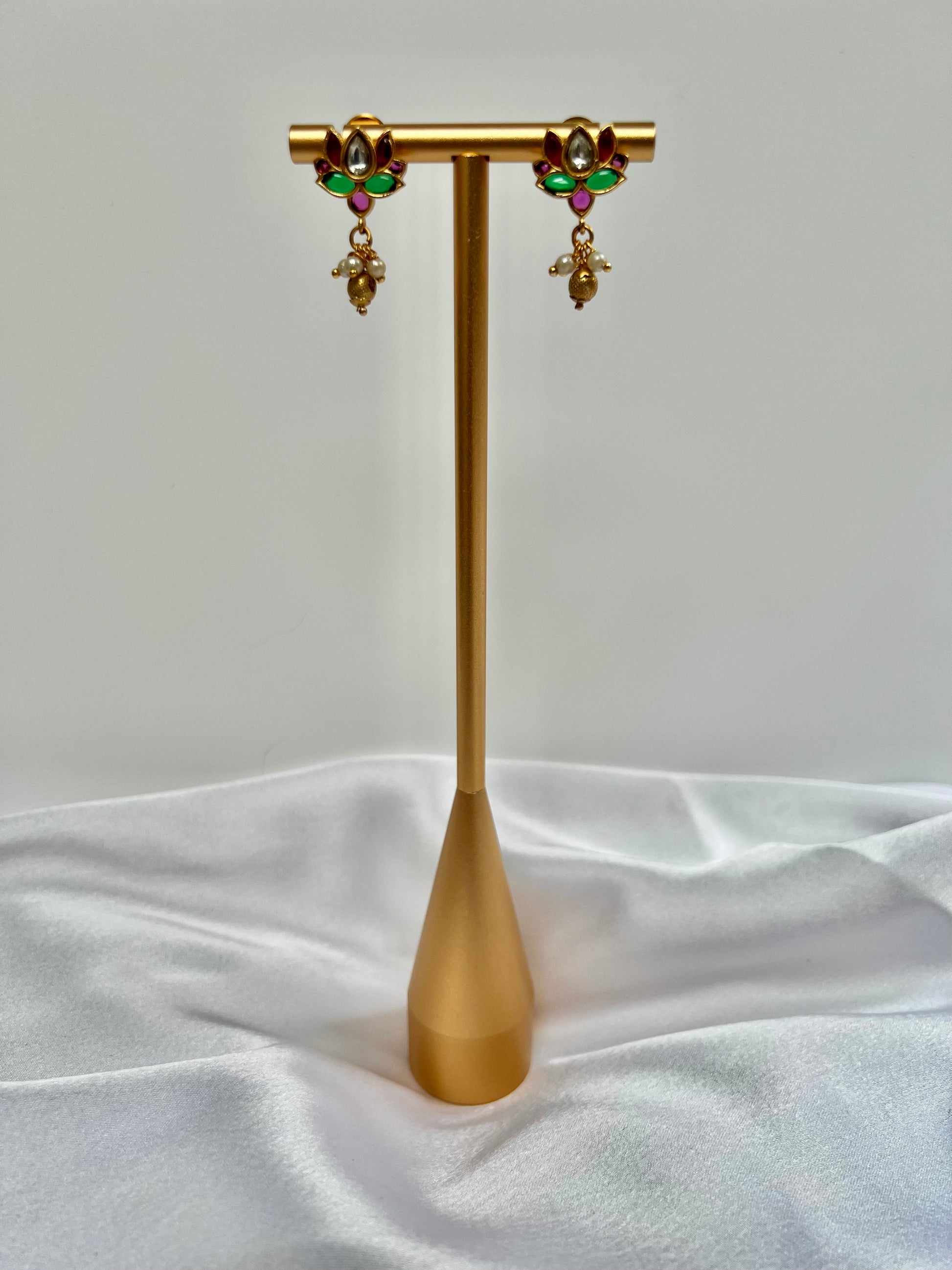 Simple small dainty rubygreen lotus earrings suitable for party wear. Perfect for kids as well!