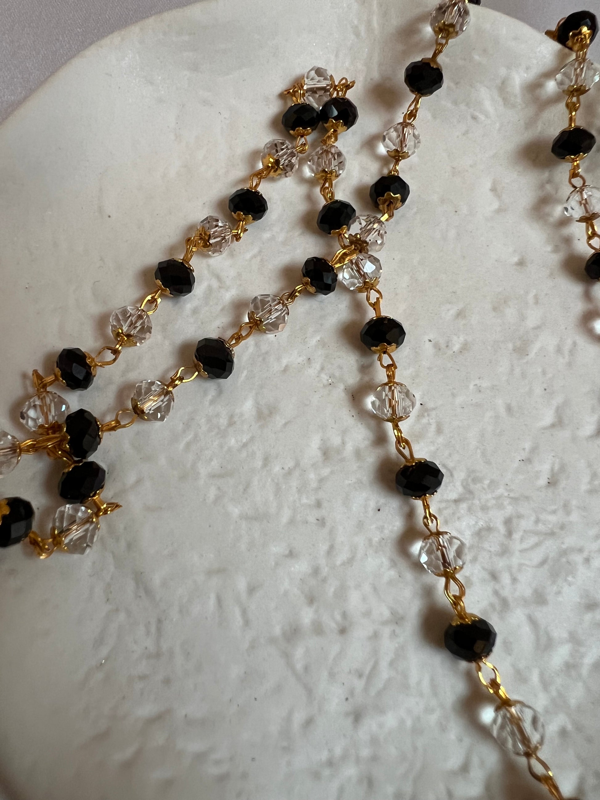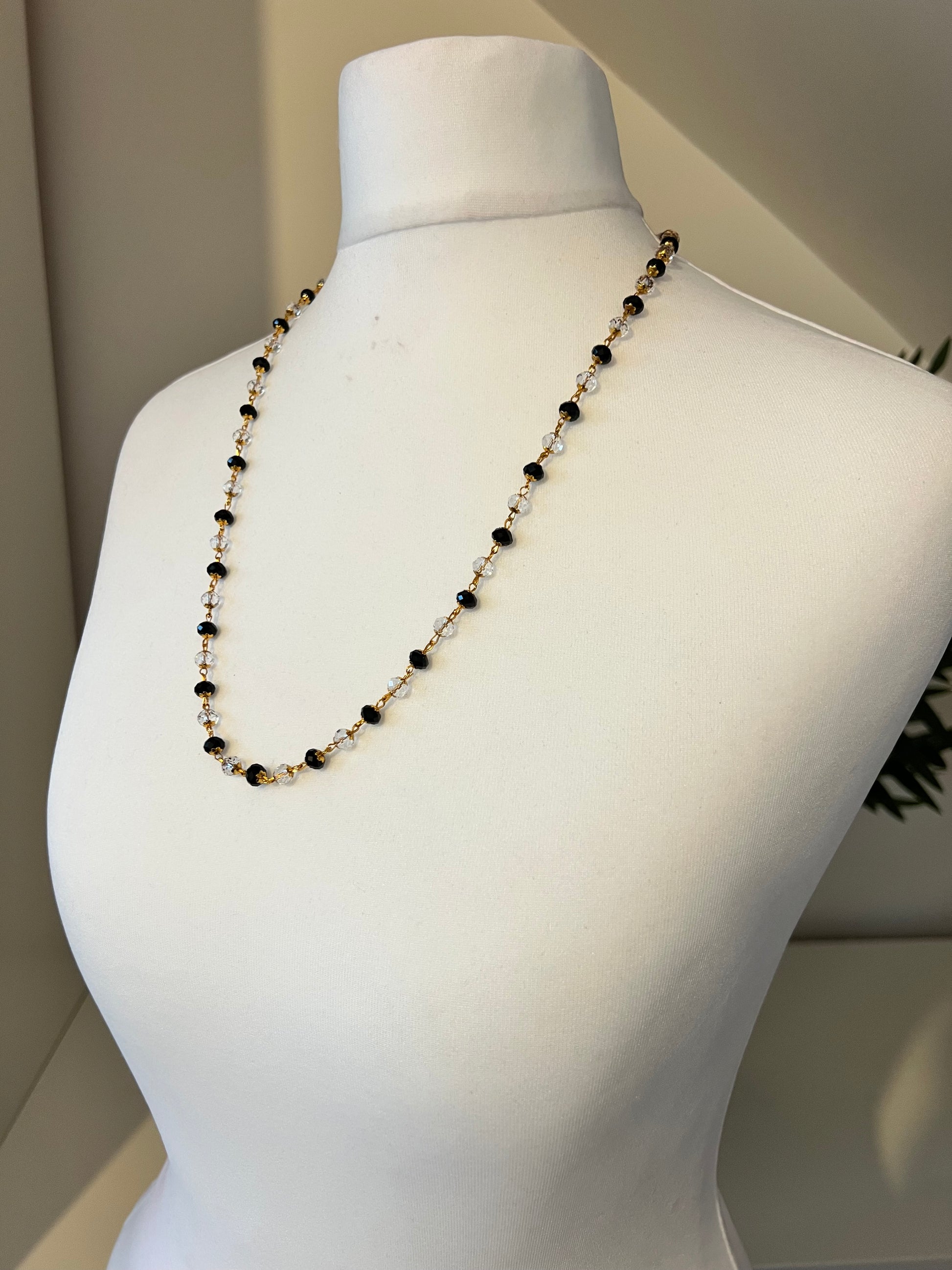 SUHANYA - Simple long black and clear beads golden necklace N3237