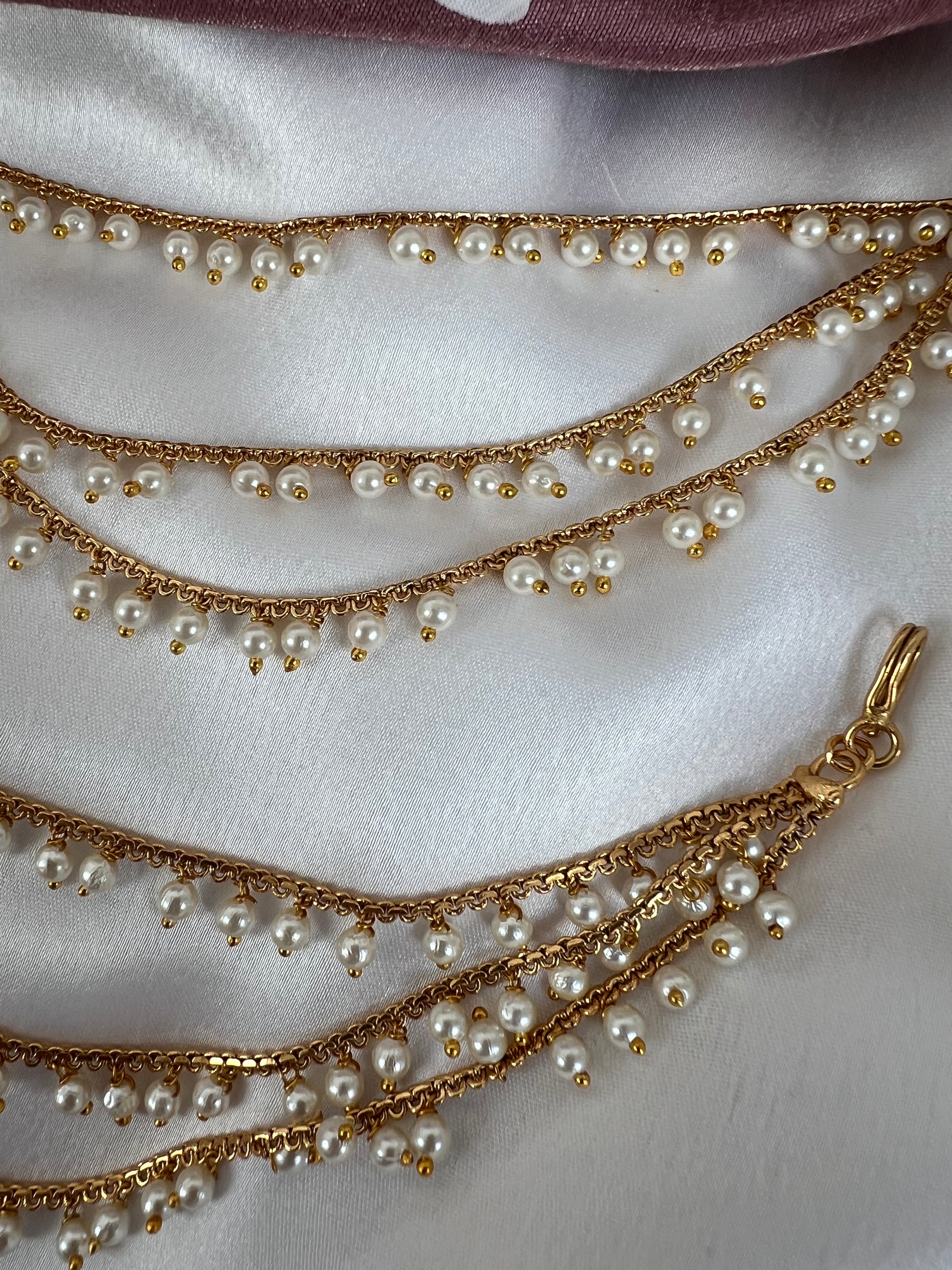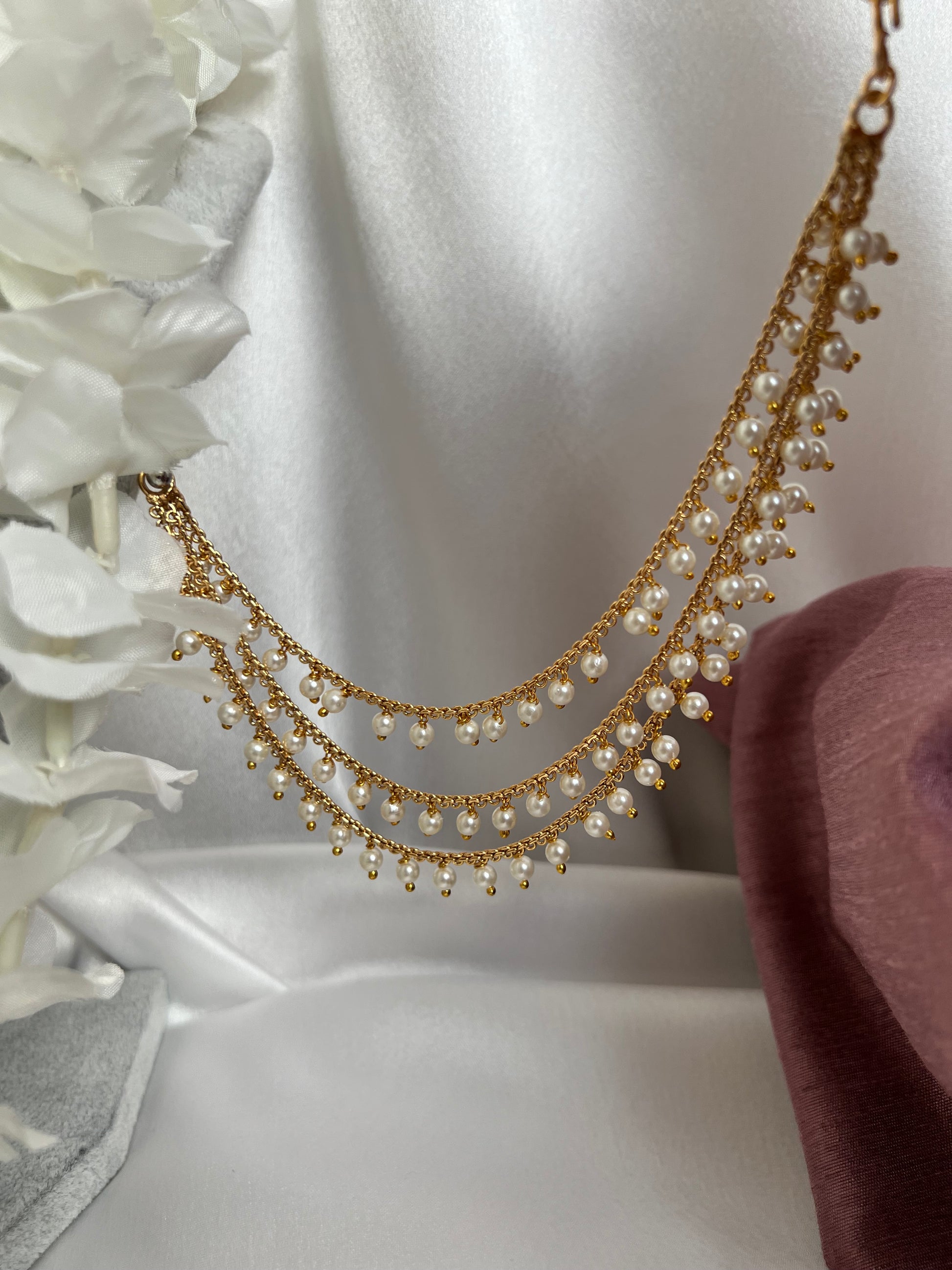 Three layered gold plated pearl ear chain, set of two EC3004